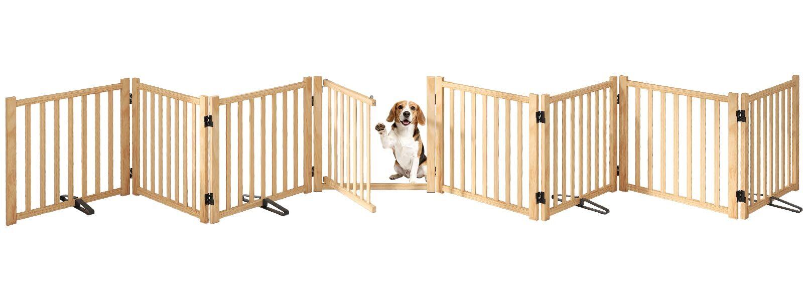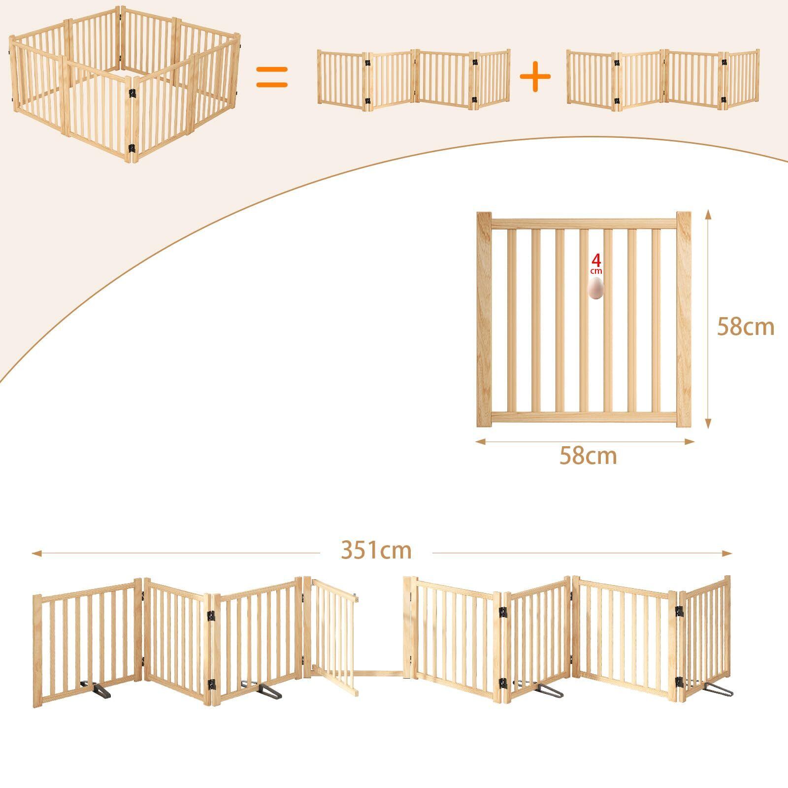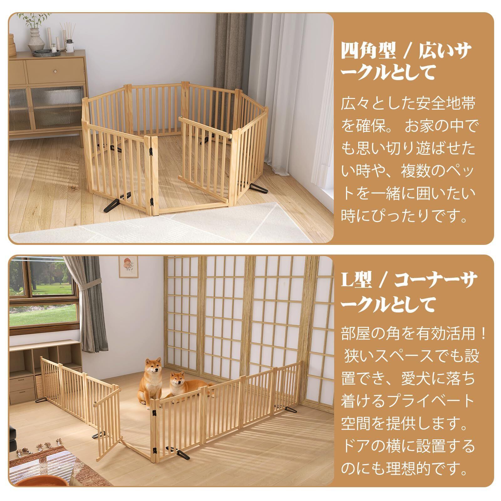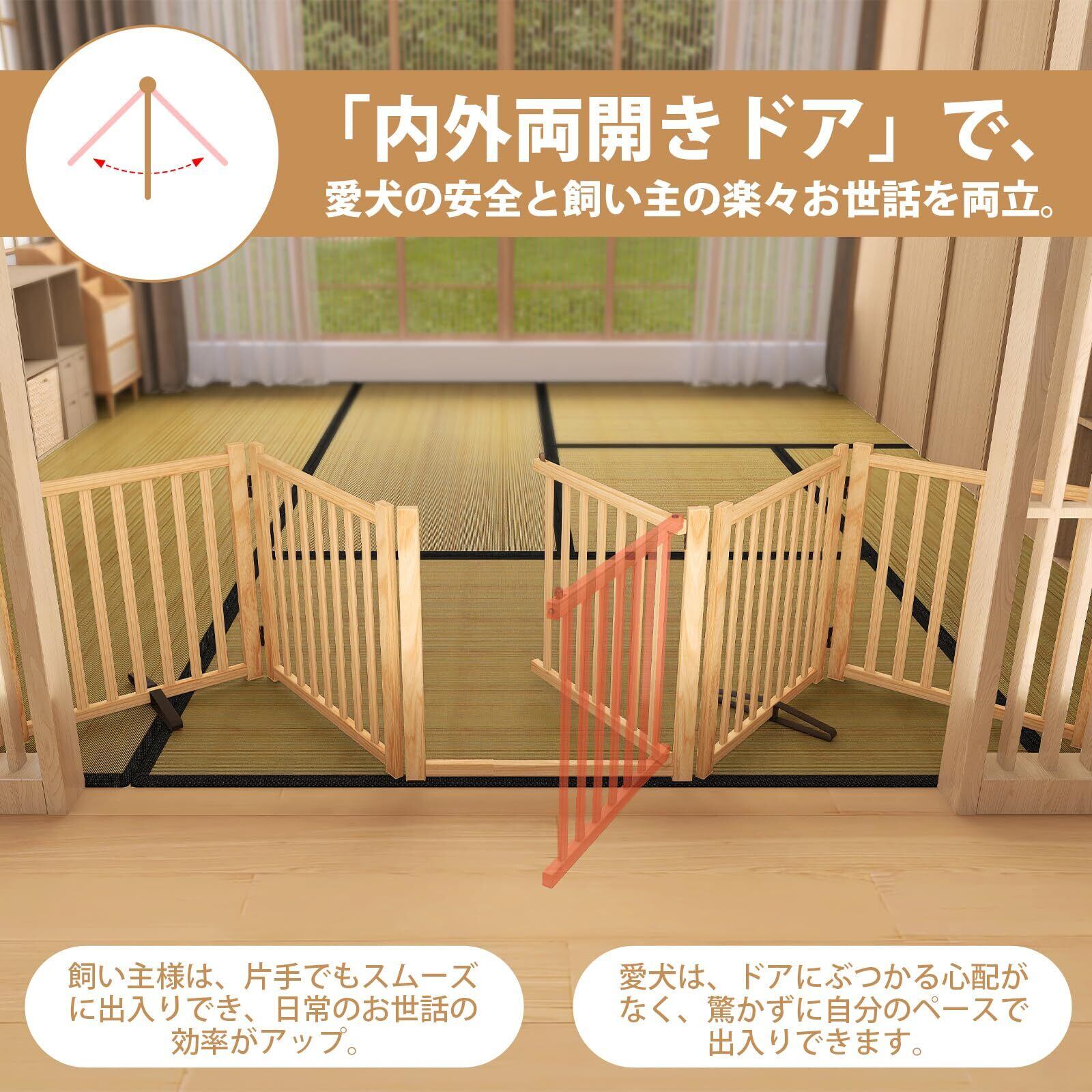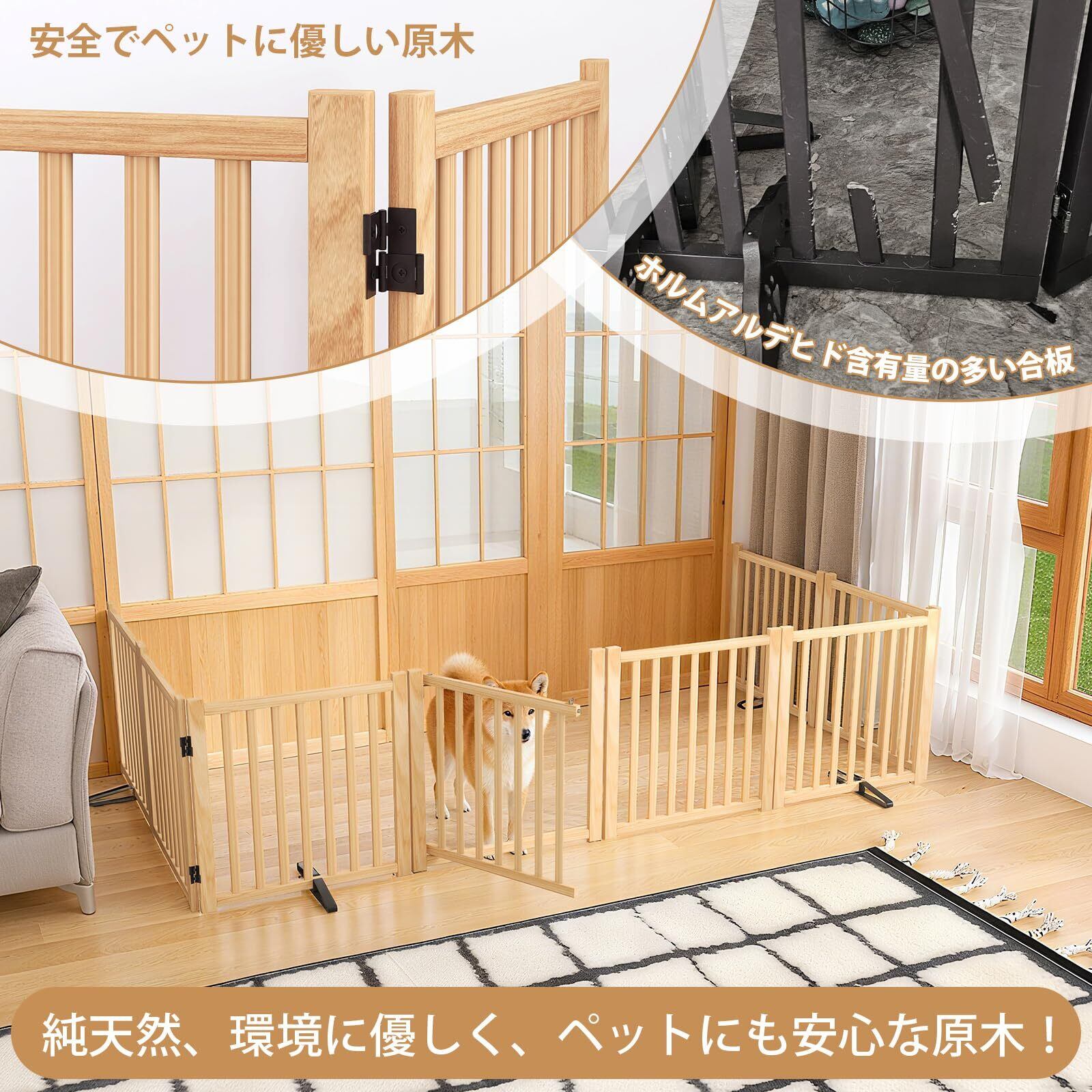 Oapety ペットゲート ドア付き 置くだけ 犬 ゲート ペットフェンス 高さ58cm 幅468cm 自立型ゲート 折りたたみ式 犬フェンス 室内用 ペット飛び出し防止柵 木製 玄関 軽量