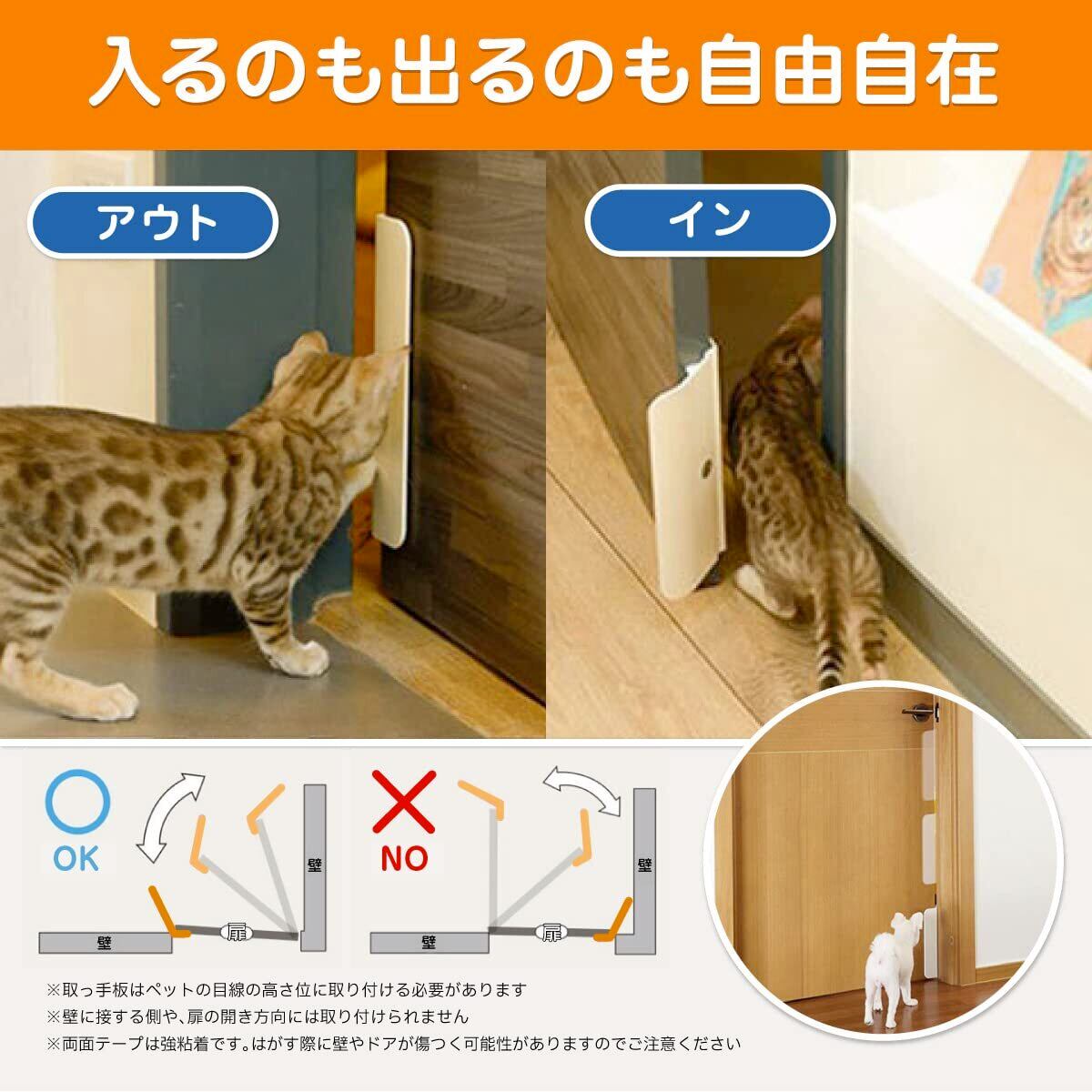 【工事不要ですぐつかえる】ペット用の取手板は粘着テープ設置で簡単取り付け。設置リングもマグネット付きですぐに取り外し可能。
