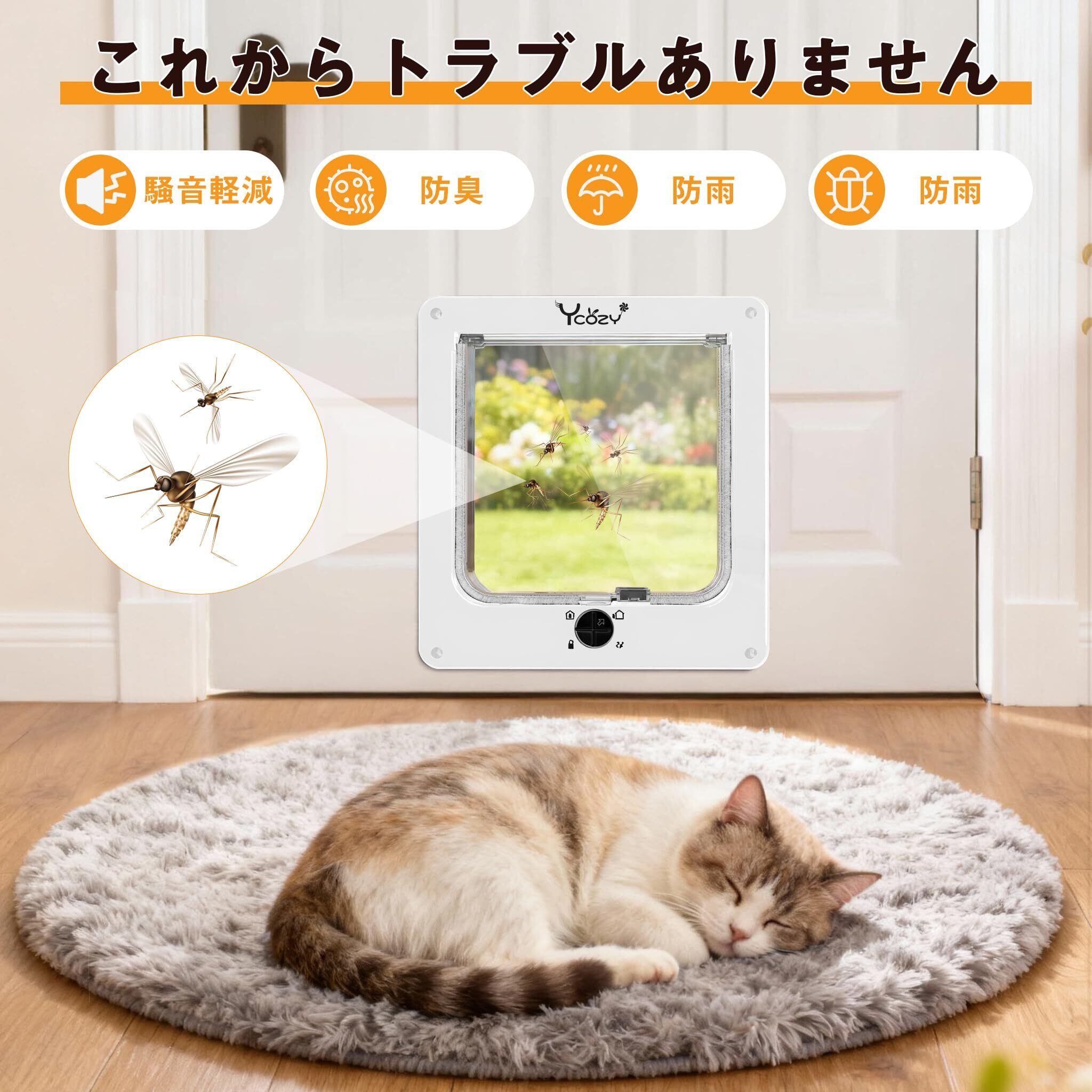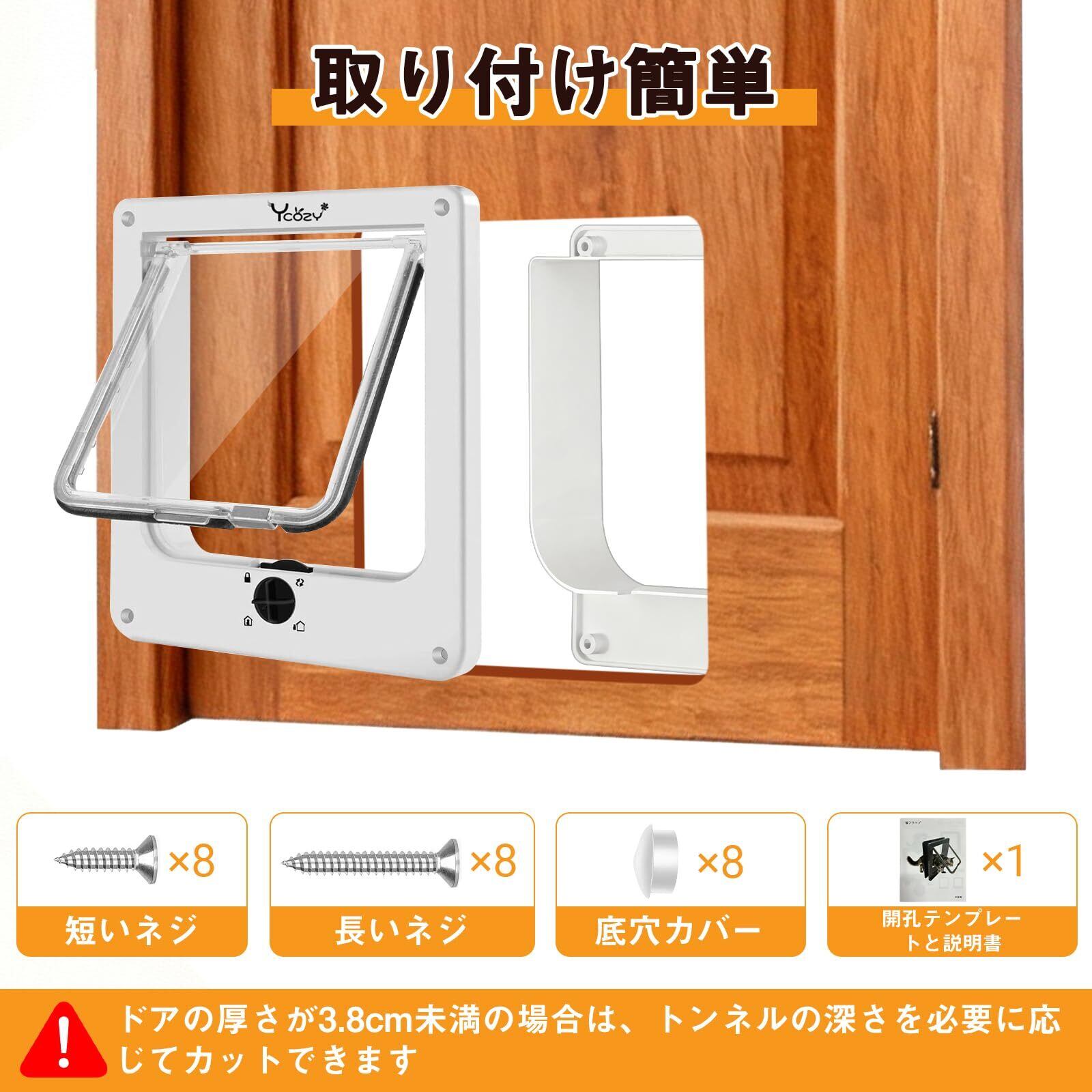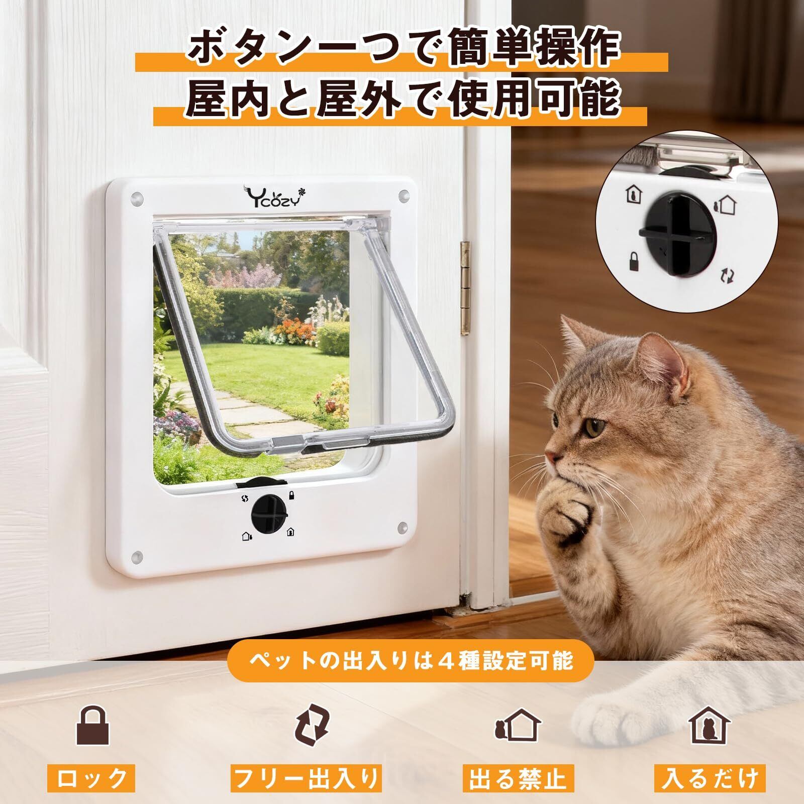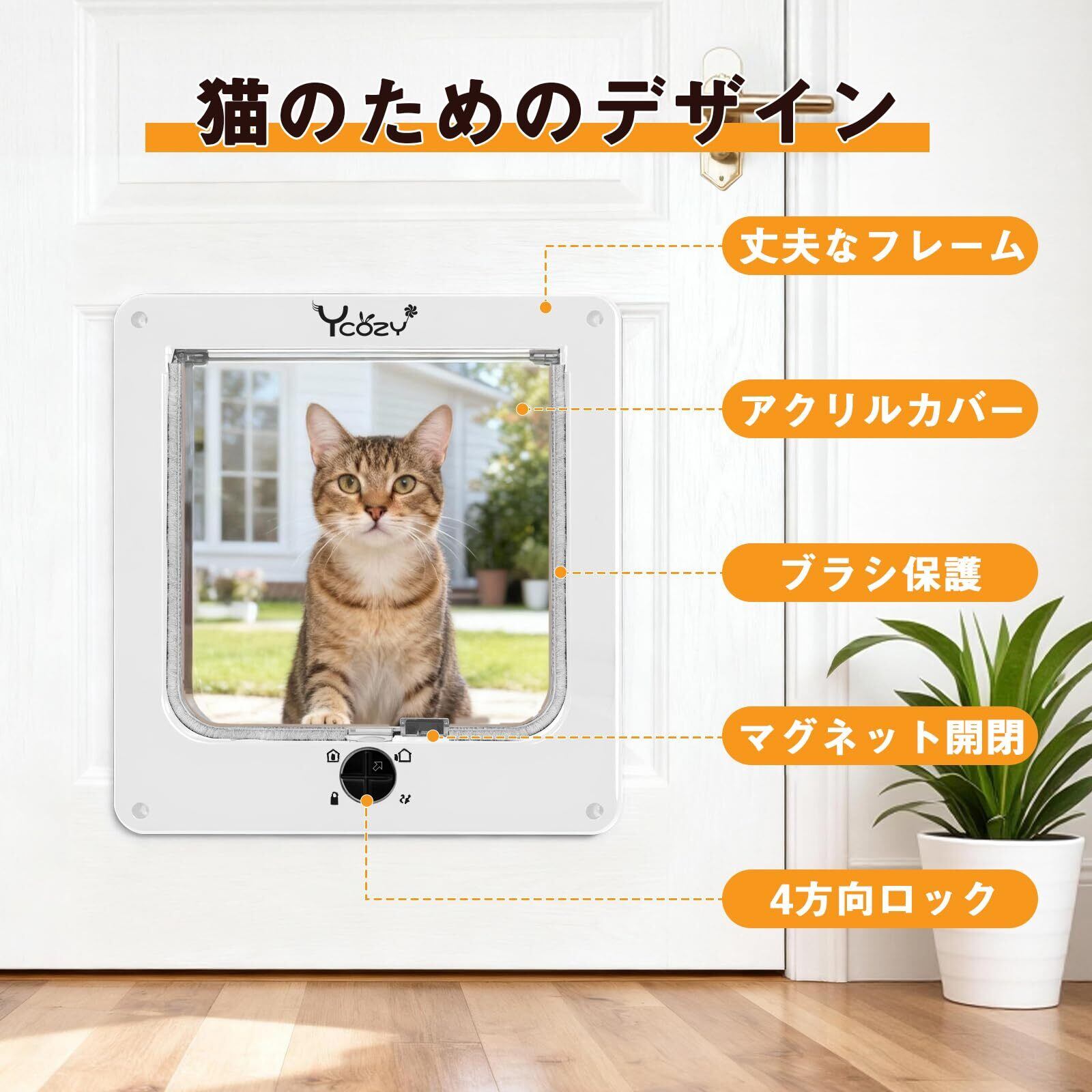 Ycozy 二世代 ペットドア 外寸29.5 x 25cm 猫 出入り口 小型犬用 ドア 猫扉 4ウェイロッキング キャットドア 室内用 取り付け簡単 冷暖房対策
