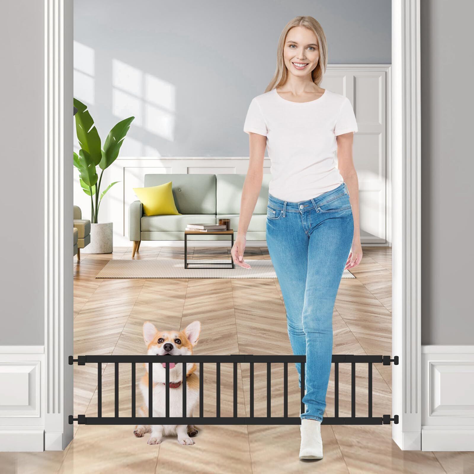 【高品質素材】ペットゲート 犬は高密度炭素鋼を採用し、安定性と耐久性が優れだ、耐荷重性があり,容易に変形せず、犬には倒せない。