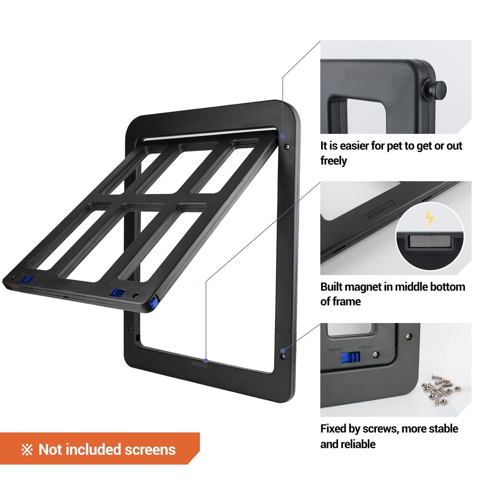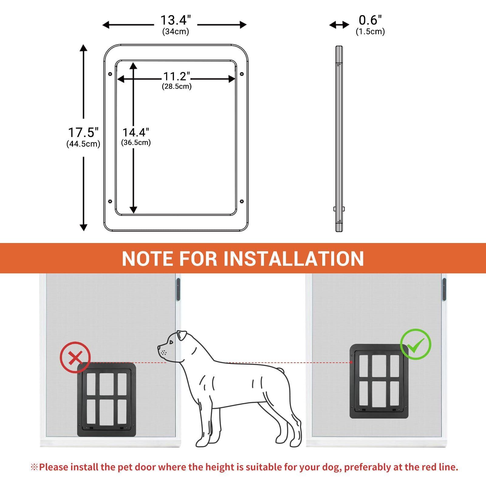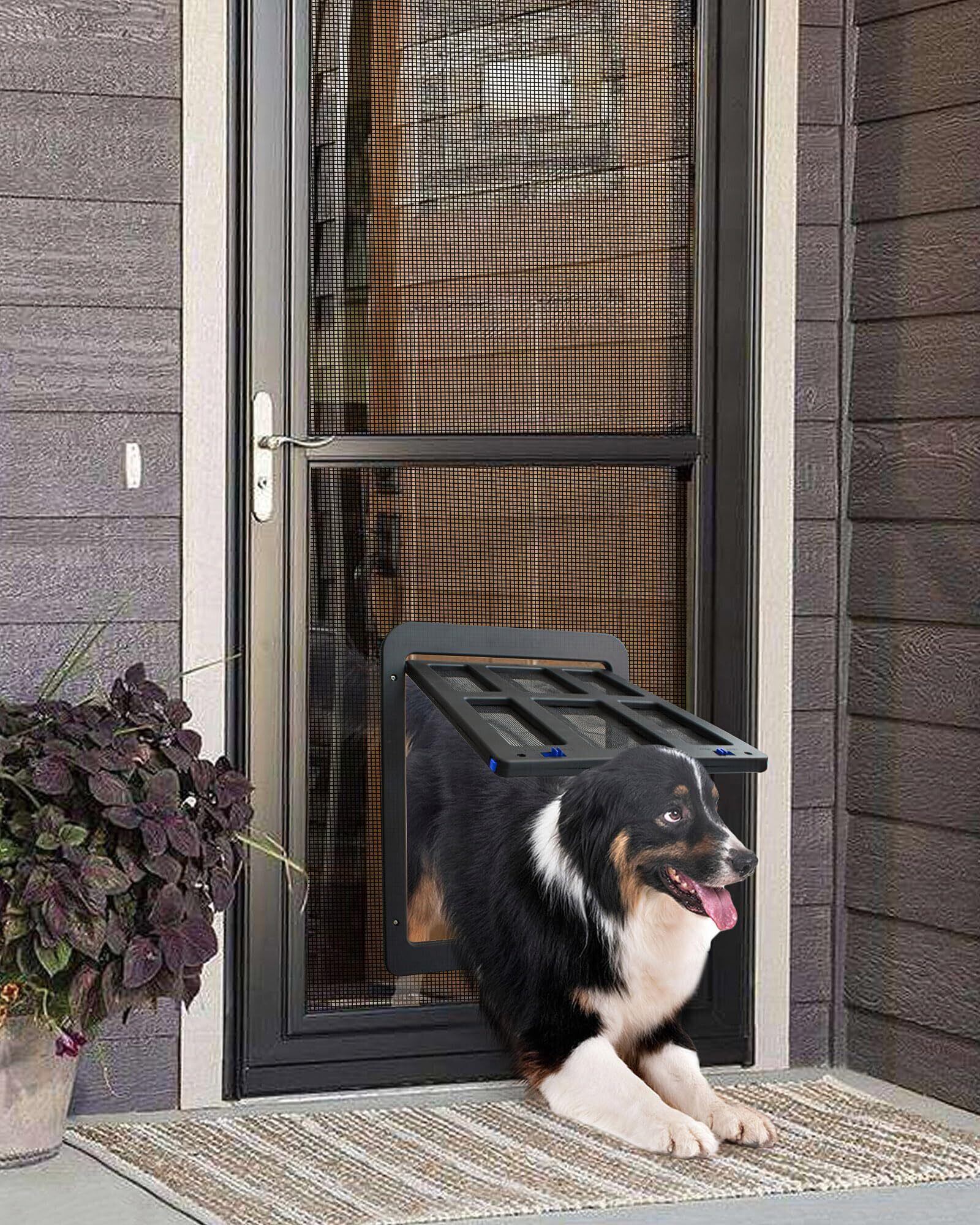 PETLESO犬ドア ペット用網戸ドア 網戸用ドア 犬自由に出入の口 ロック可能取付簡単の大型犬用ペットドア (中大型犬用)黒