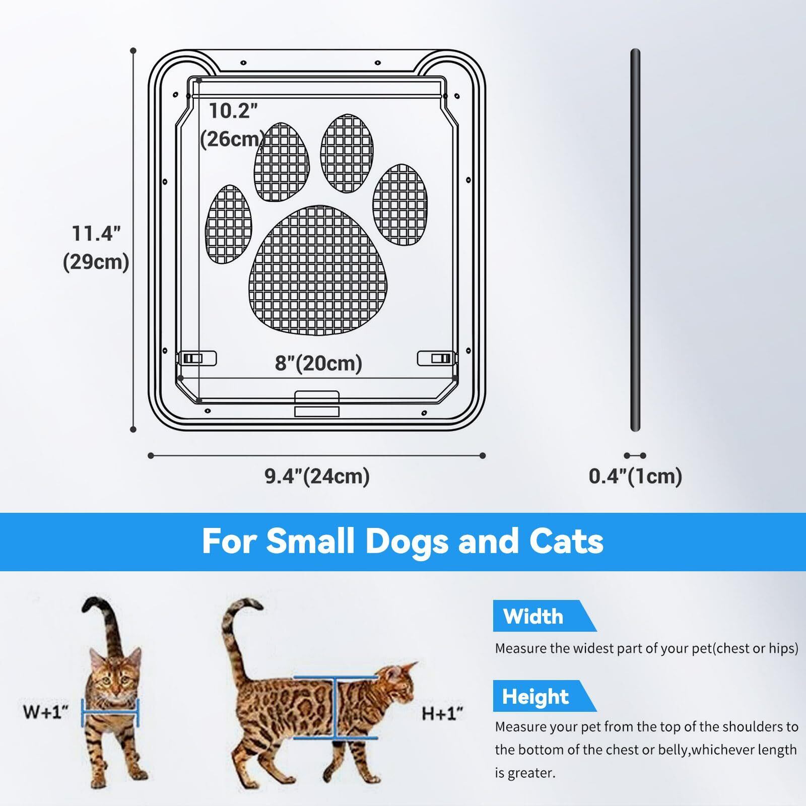 猫ドア フレーム: 24 × 29 cm、出入り口:20.5 x 26 cm;猫、子犬、その他の小さなペットが自由に出入りするのに適しています。ペットの高さに合わせてペットドアを取付する。