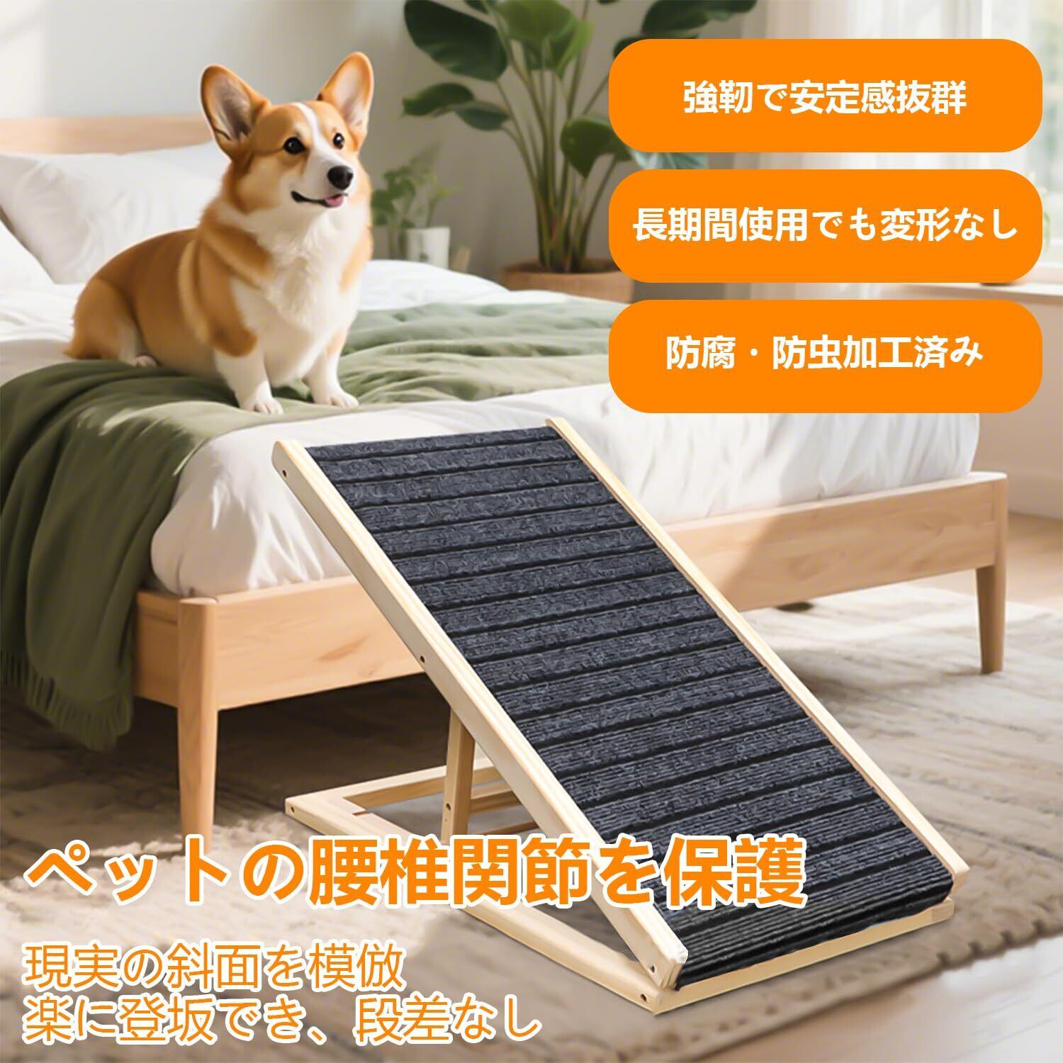 ペットスロープ 【天然木 ・ドッグトレーナー監修】 犬 スライド式 スロープ 坂状 高さ調節可能 折り畳み 持ち運びやすい 組立簡単 省スペース 子犬 老犬 ペット介護用 足腰の負担を軽減 (M)