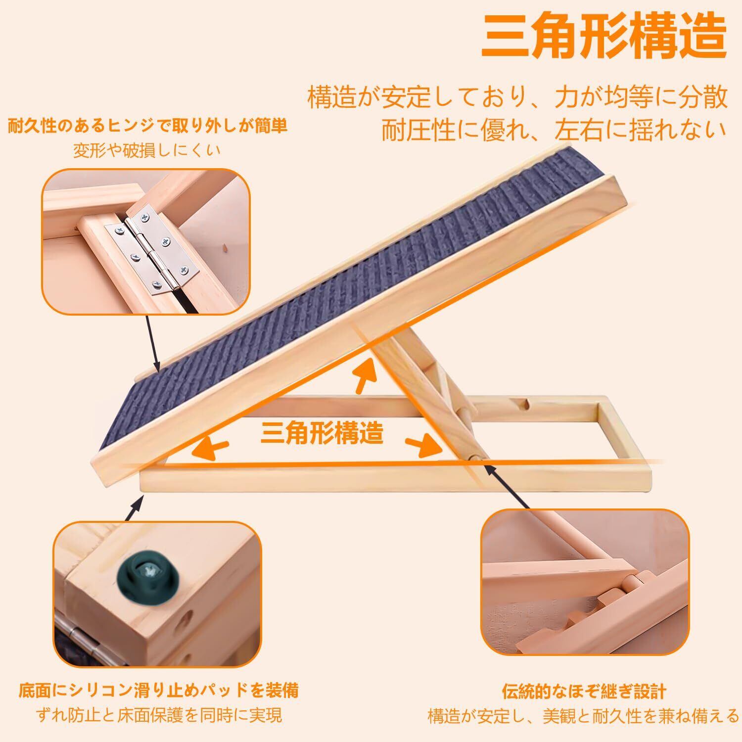 【十分頑丈で安全】:全体は高品質な天然木材を使用し、防腐・防虫処理を施しているため、割れにくく長寿命です。最も安定した三角形構造を採用しており、耐圧性に優れ、ペットが毎日登り降りする重量を安全に支え、ぐらつきません。最大30kgまで耐荷重可能です。
