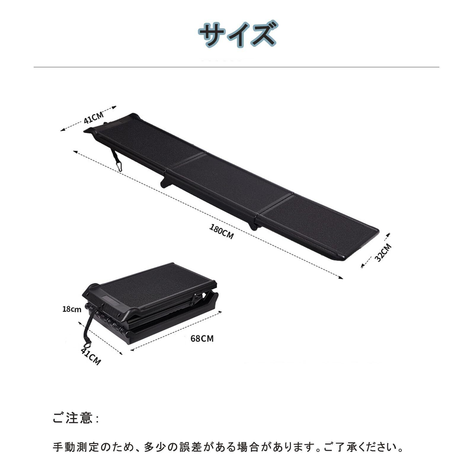 【製品仕様】犬用スロープサイズ:180*41cm。収納時サイズ:41*68*18cm。耐荷重:75kg。重さ:約6.9kg。
