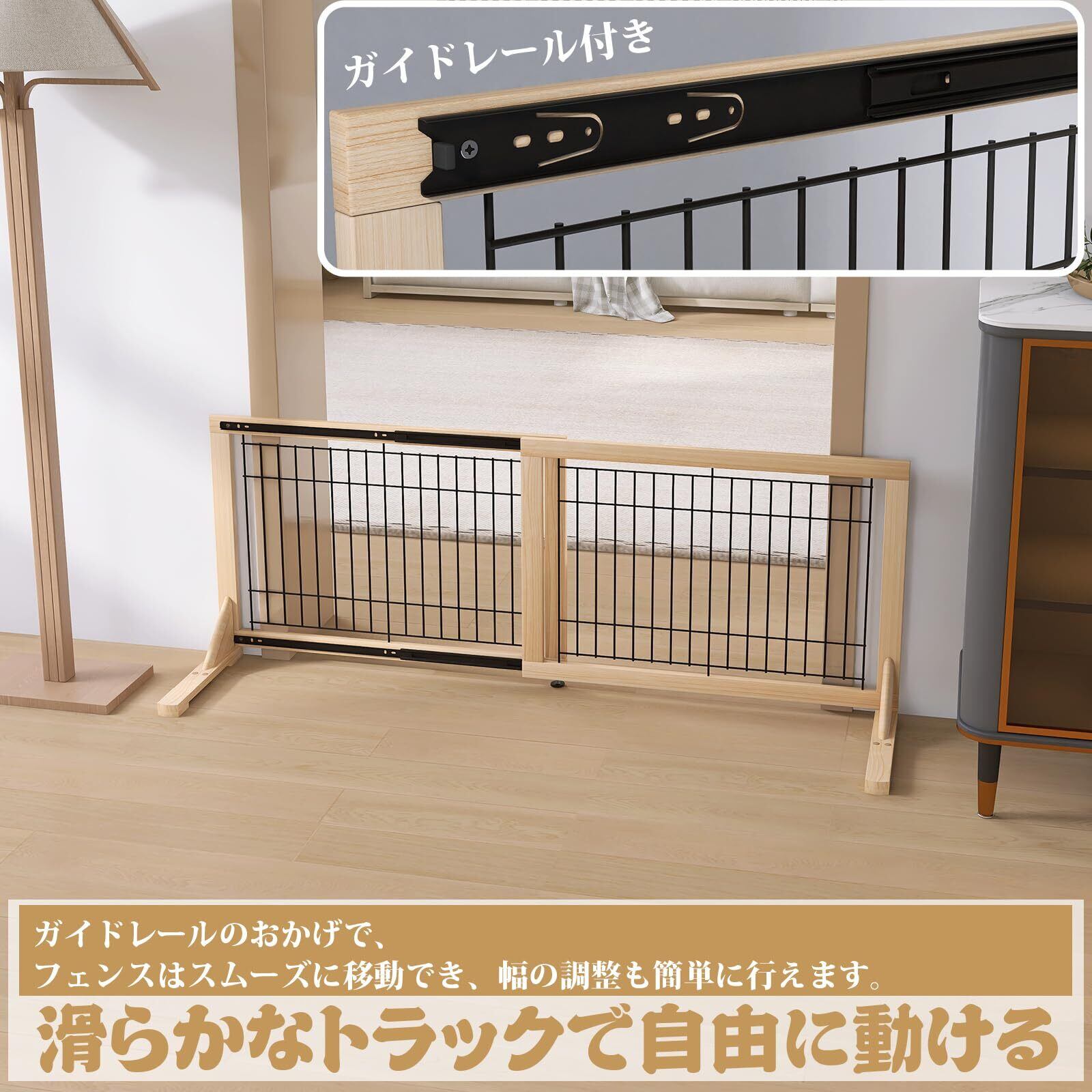 「新型レールフェンス」Oapety ペットゲート 置くだけ 高さ50CM 伸縮 幅約64~115cm 犬 ゲート 木製 ガイドレール付き ベットフェンス 室内 飛び出し防止柵 脱走防止 中小型犬用 スムーズ