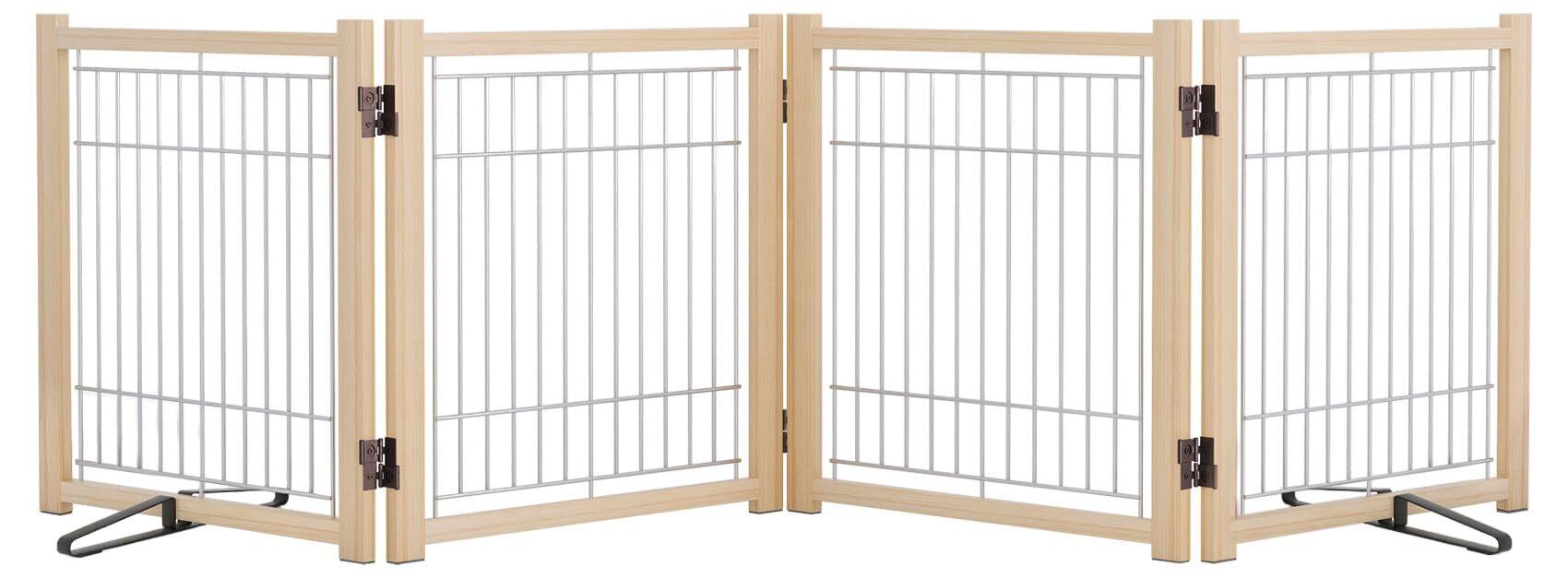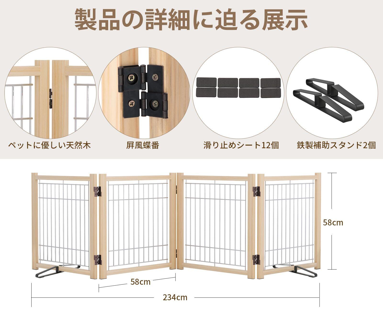 YOCAN ペットゲート ペットフェンス 高さ58cm 幅234cm 木製犬用ゲート 置くだけ 折りたたみ ついたて ペット 倒れない 飛び出し 脱走防止 中小型犬用 4枚パネル