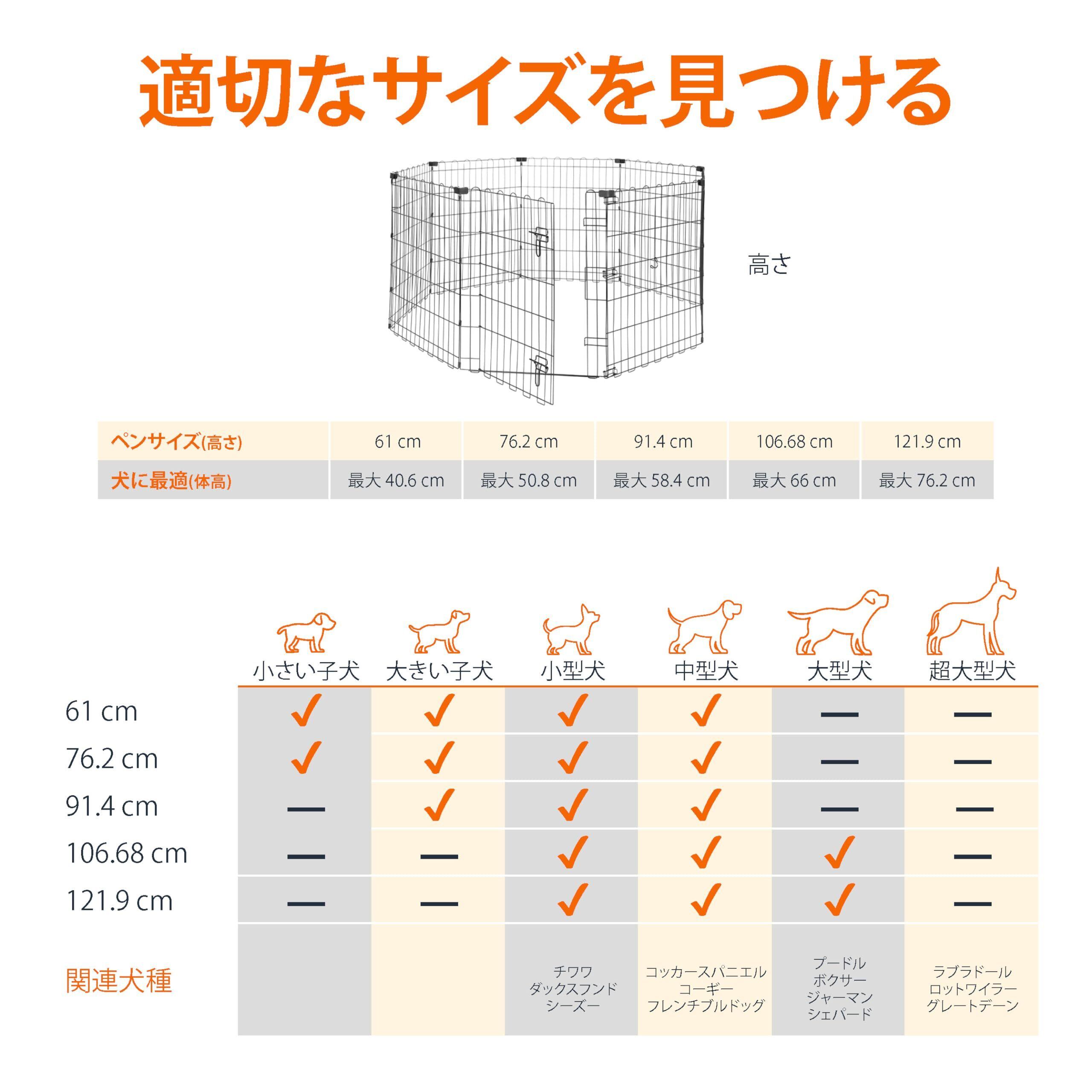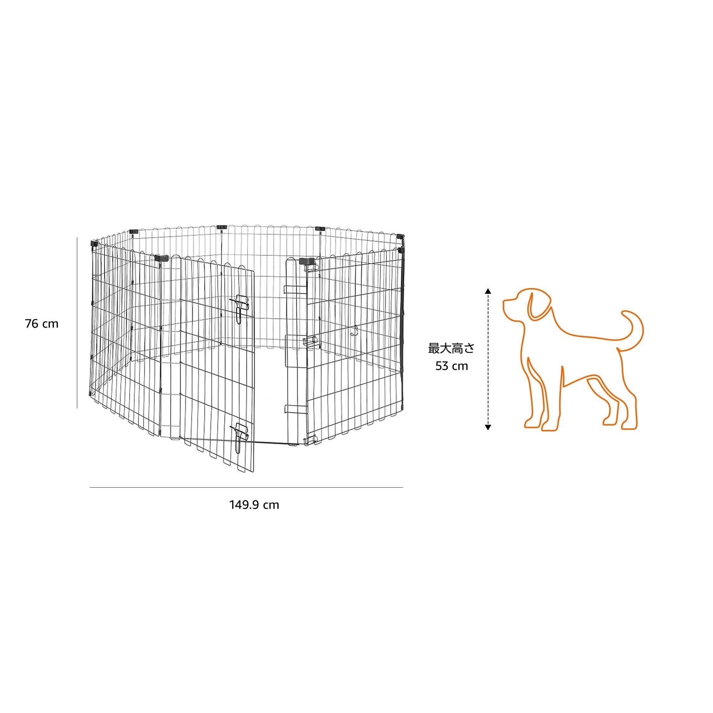 ベーシック ペットサークル ペットフェンス 犬用 折りたたみ可能 金属製 ゲート付き パネル8枚 八角形 正方形 長方形 152.4 x 152.4 x 76 cm ブラック
