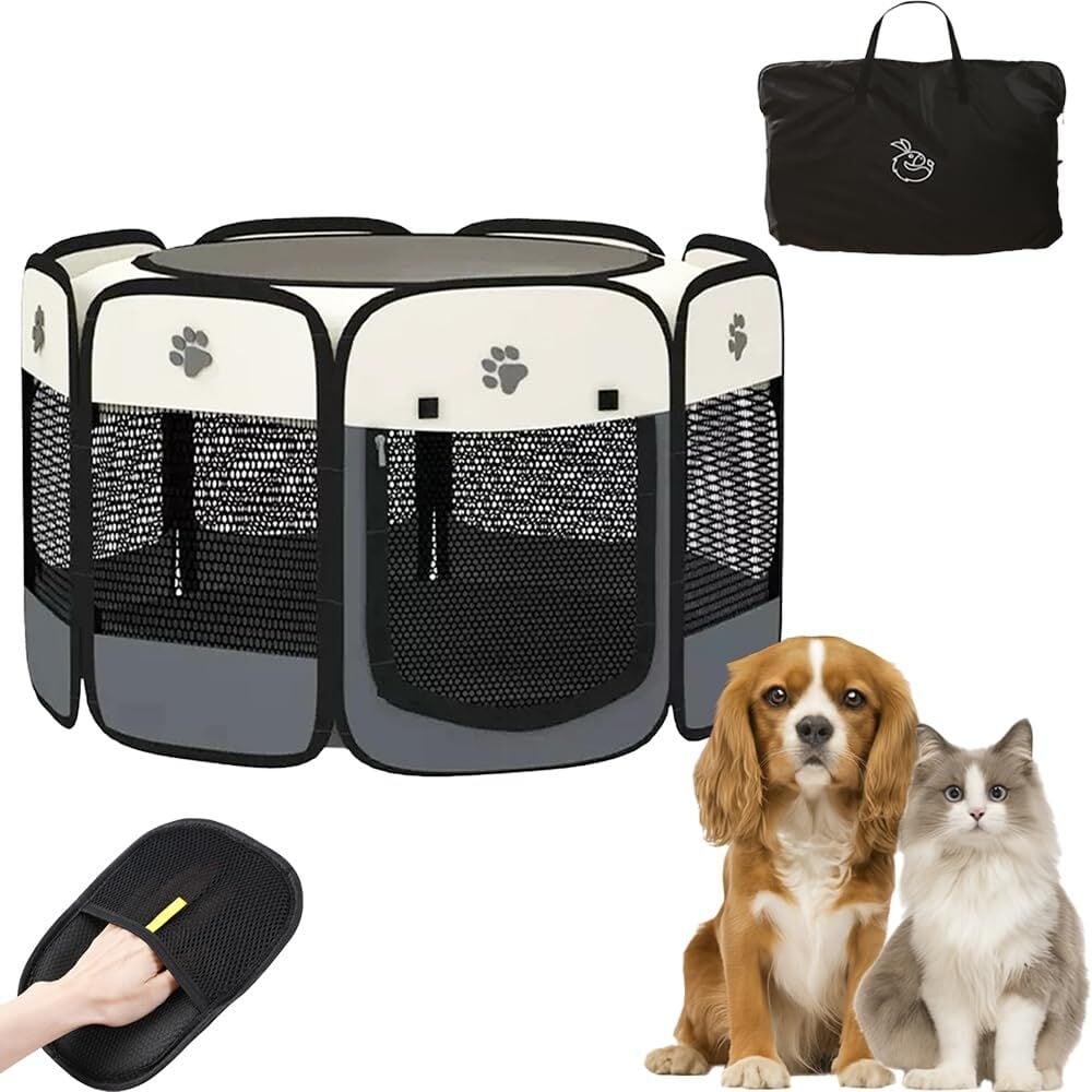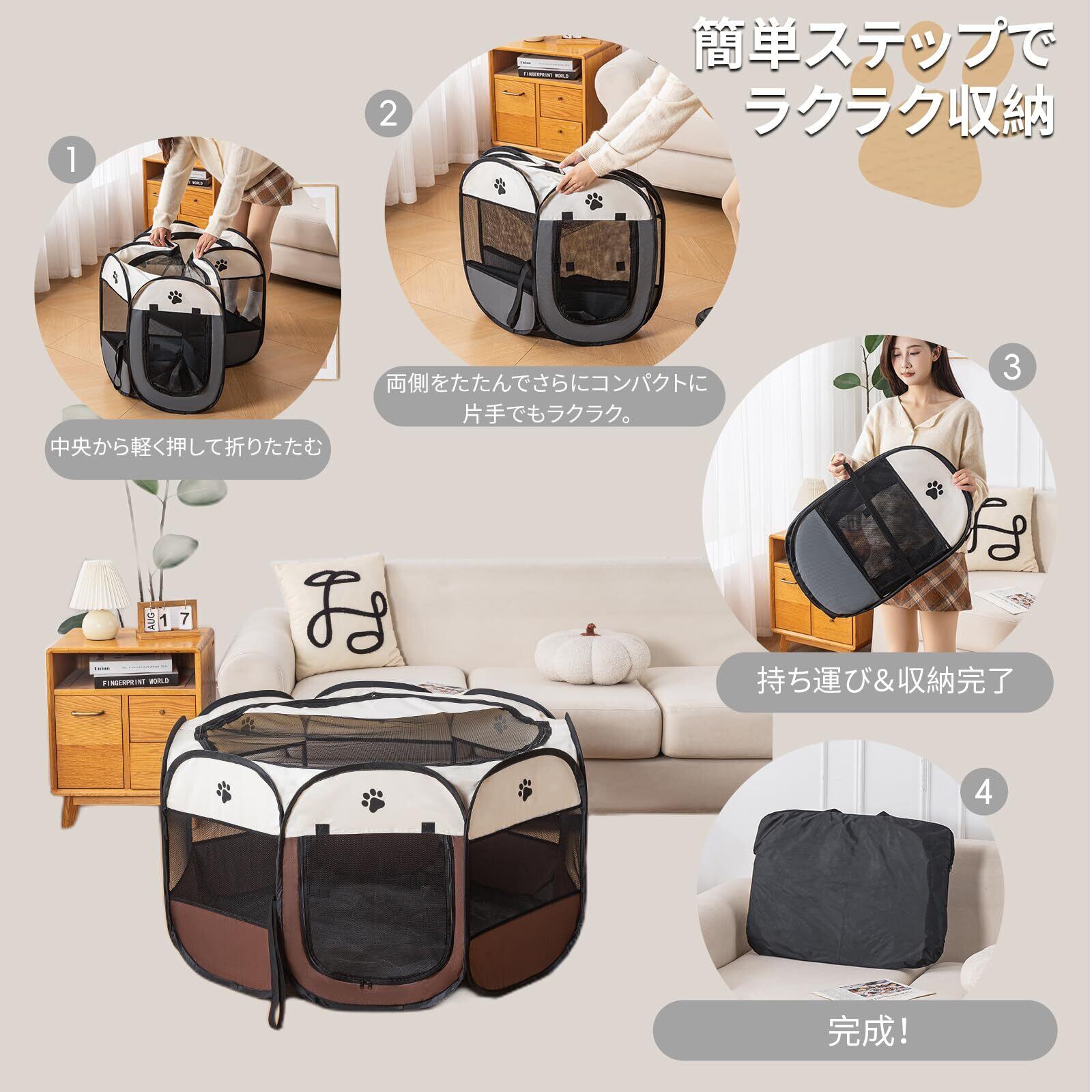 ペットサークル 折りたたみ式 収納バッグ付き 組み立て不要 猫 サークル 犬用 ケージ 持ち運び コンパクト アウトドア 旅行 災害対策 グレー L