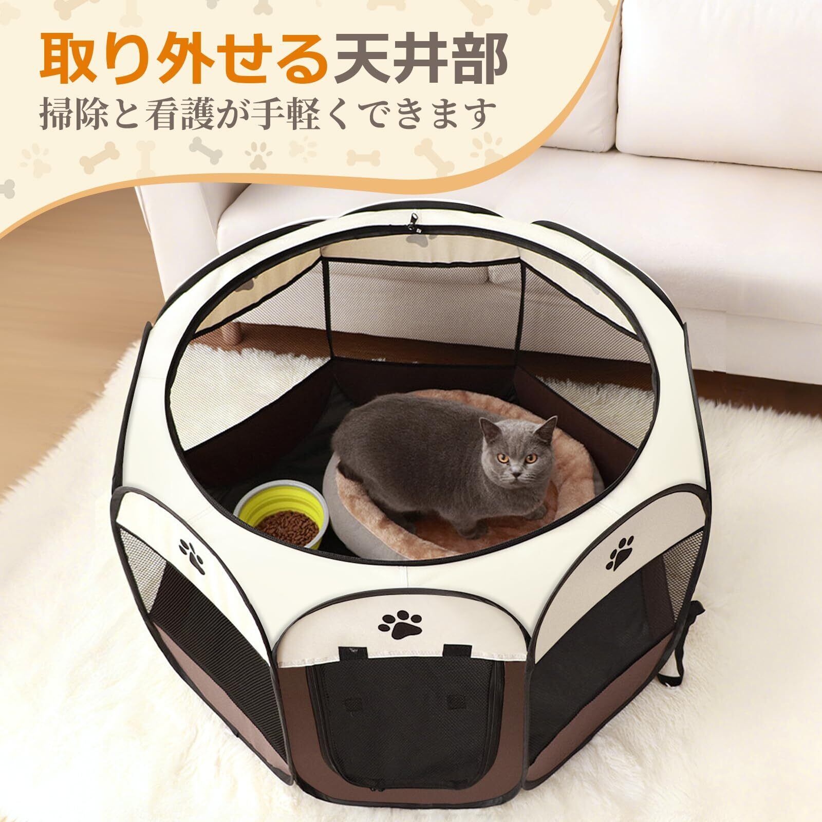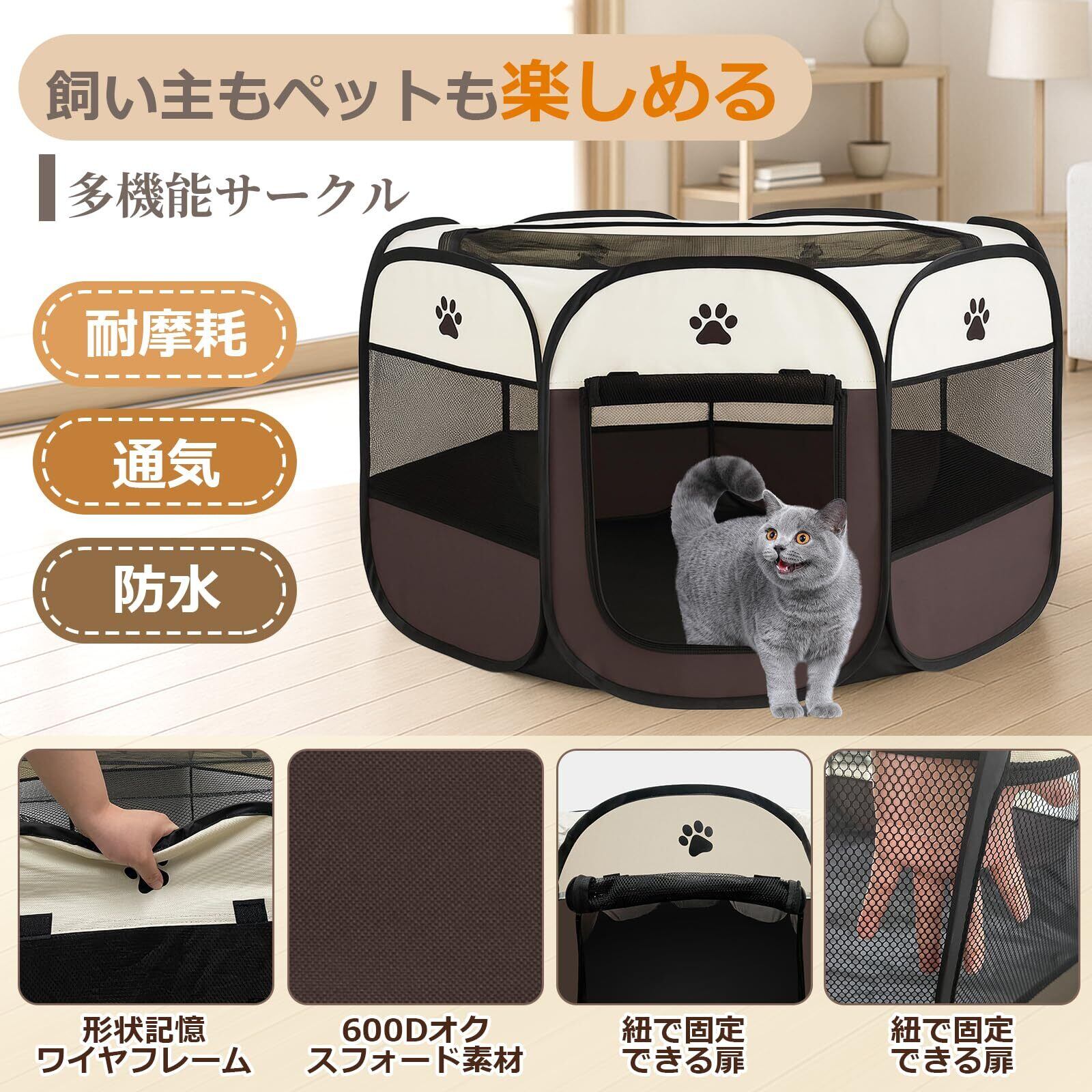 風織商社 ペットサークル 折畳み 犬 サークル 室内 91cm*91*58cm 猫 サークル 大型 八角形 ドッグハウス ペットサークル 屋根付き アウトドア 防災 猫 犬 ケージ 犬 サークル 折り畳み 室内 屋外 キャンプ メッシュサークル 頑丈 出産室 大型犬 小型犬 猫 (ブラウン, L, 8)