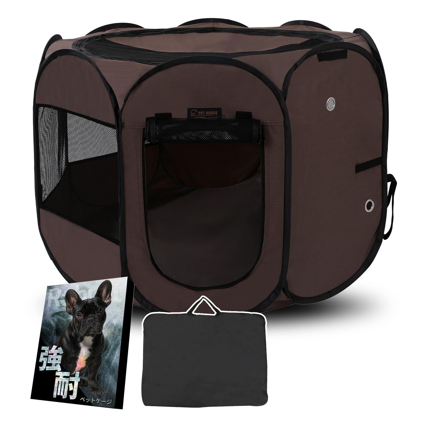 【大手雑誌掲載】プレミアムモデル 高耐久 多機能 ペットサークル 折りたたみ式 猫 犬 ケージ 屋内 屋外 災害 床面防水撥水加工 オートロックファスナー メッシュ強化 床面強化 給水ボトル対応 高い品質を愛情価格で 幅74cm×高さ43cm (NEWブラウン, Mサイズ)