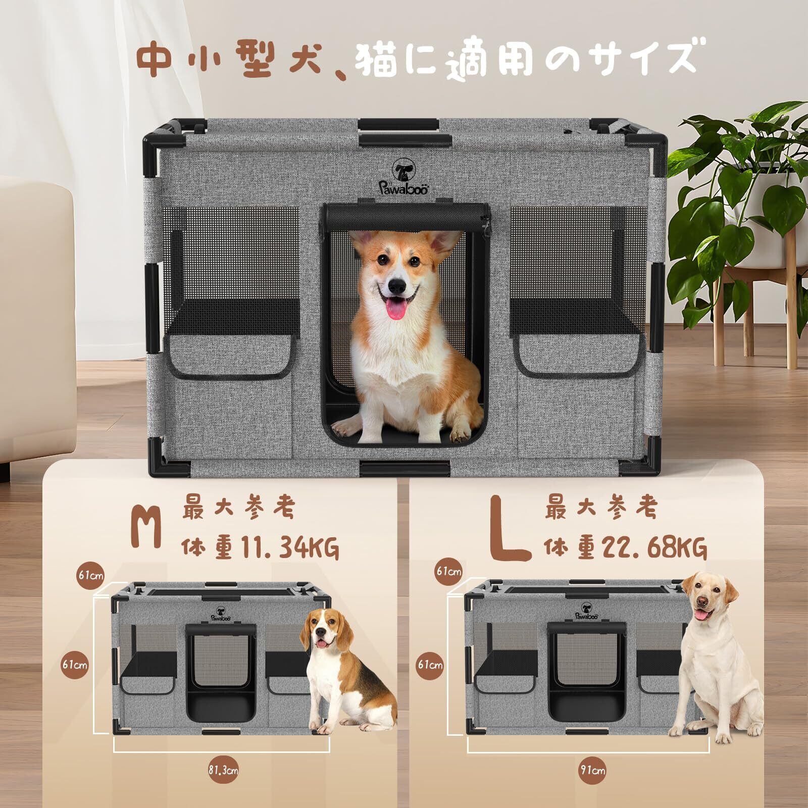 Pawaboo ペットサークル 折りたたみ 犬 ケージ メッシュ 扉付き 小型犬さーくる 屋根付き サークル 犬 室内 組立簡単 長方形 キャットサークル ペットフェンス 犬 屋外サークル ファスナー式 出入り便利 うさぎ 引き裂けにくい ハムスター 防水 Mサイズ グレー+ブラック