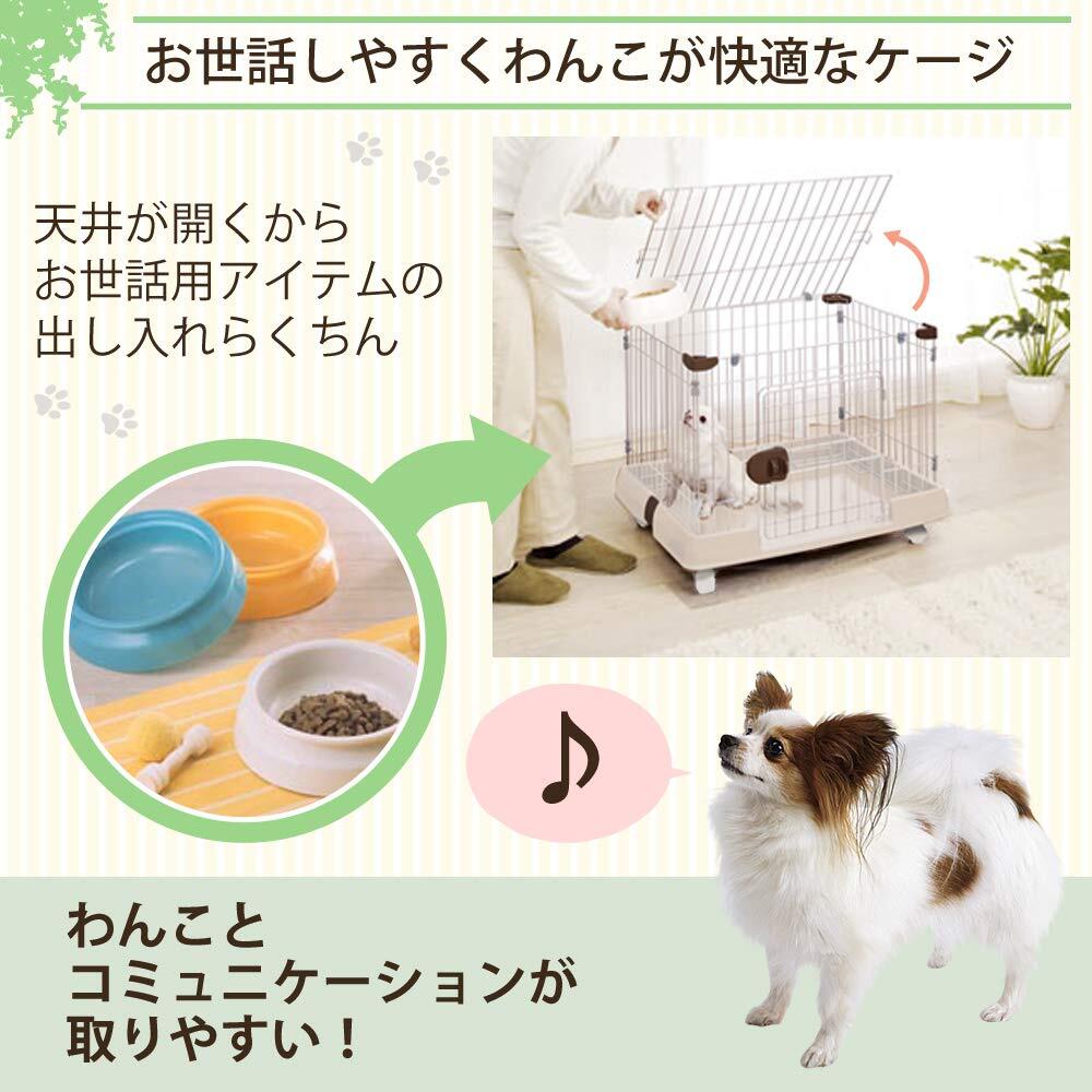 室内犬が快適に過ごせるサイズのペットケージです。ドアロックは片手で簡単に開閉できるワンタッチ式、天面扉はフルオープンタイプです。移動に便利なキャスター付きです。