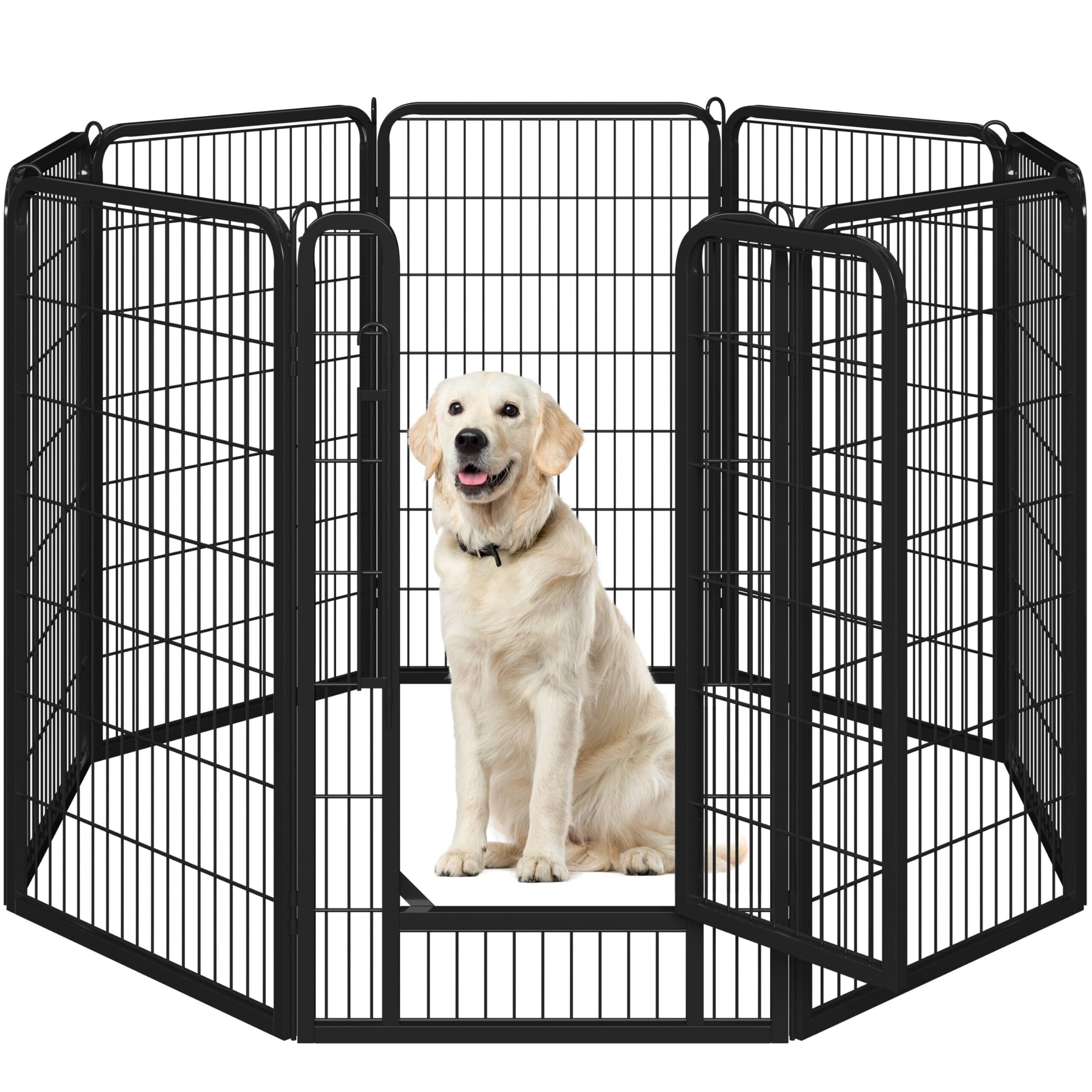 Yaheetech ペットサークル 大型犬用 高さ120cm超大型犬用 全成長期使用可 スチール製 組立簡単 折りたたみ式 パネル8枚 複数連結可能 ペットフェンス 大型犬 ゲージ (ブラック 高さ120cm-8枚)