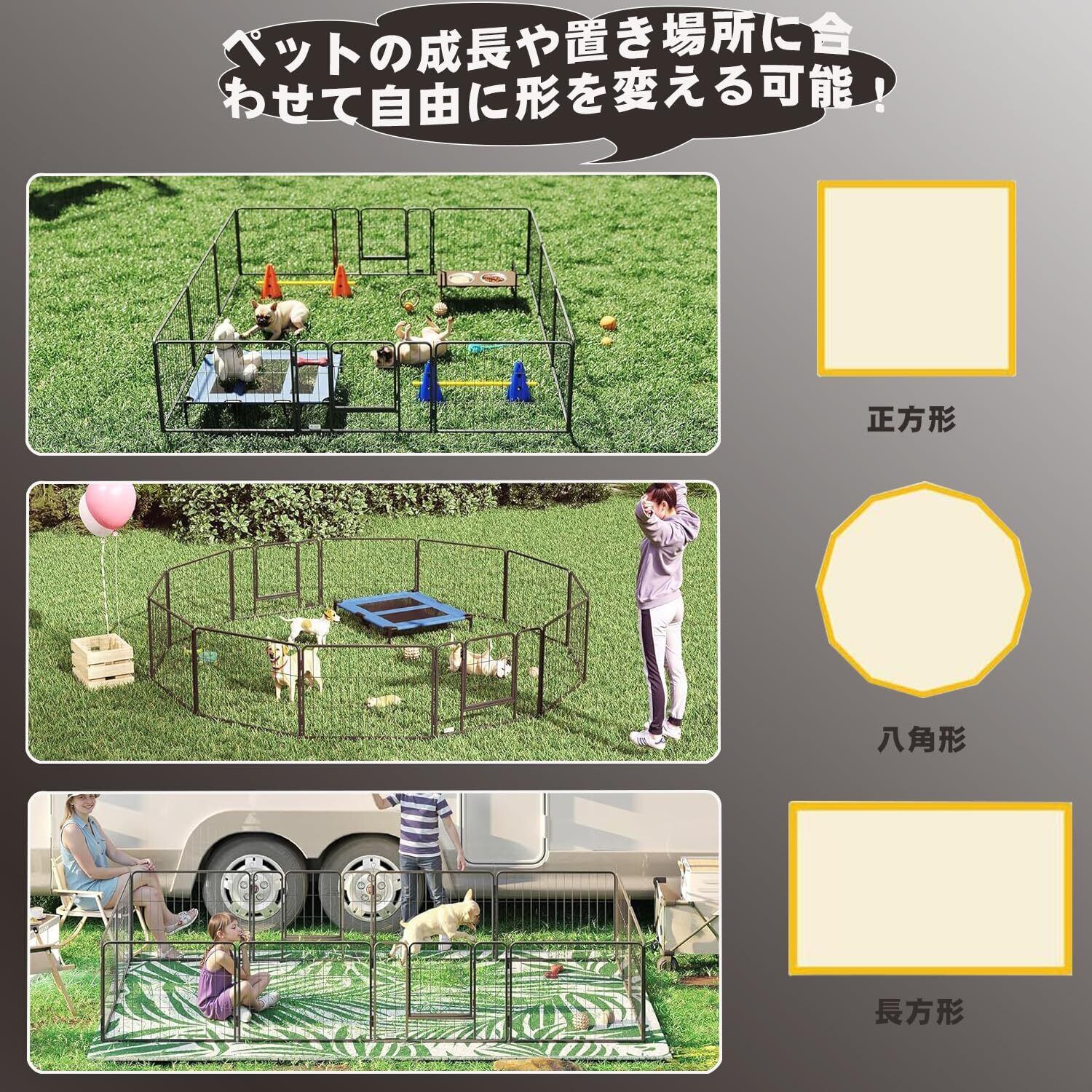 【品質を最優先:丈夫で長持ちして安心】 ペットの快適さと安全を最優先に、フェンスは粉体塗装された金属素材に防水コーティングを施して製造され、卓越した耐久性と耐候性を備えています。子犬の小さな乳歯でも傷つきにくく、長期間使用できるため経済的です。また、フェンスの角や縁はすべて丸みを帯びたデザインとなっているため、ペットが怪我をするリスクを完全に排除し、毛深い愛犬が安心して遊べる環境を提供します。