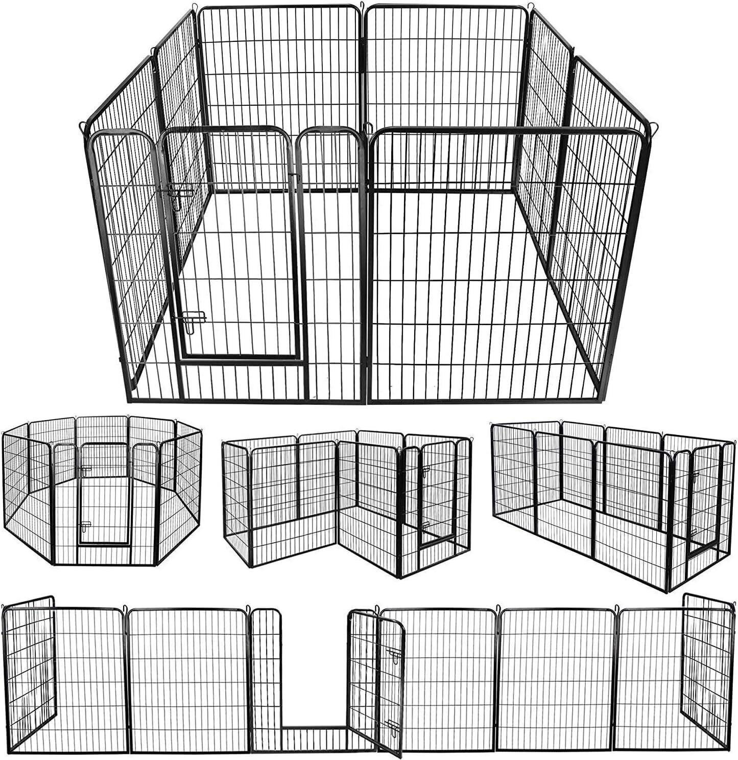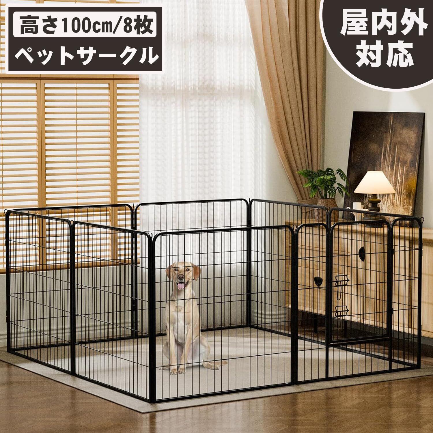 DUDULIFE ペットサークル 折りたたみ式 ペットフェンス 扉付き 形組み換え可能 室内外兼用 高さ 100cm パネル 8枚 大型犬・小動物用 全成長期対応 ドッグサークル (100*80cm-8枚)