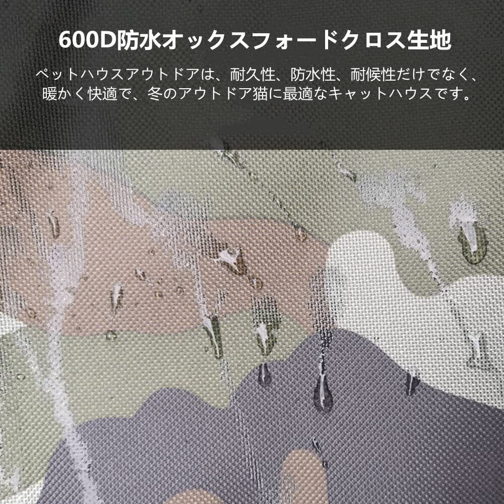 【防水・保温】:冬用断熱屋外キャットハウスは600D防水オックスフォード生地とスポンジコンパートメントで作られています。ペットハウスアウトドアは、耐久性、防水性、耐候性だけでなく、暖かく快適で、冬のアウトドア猫に最適なキャットハウスです。