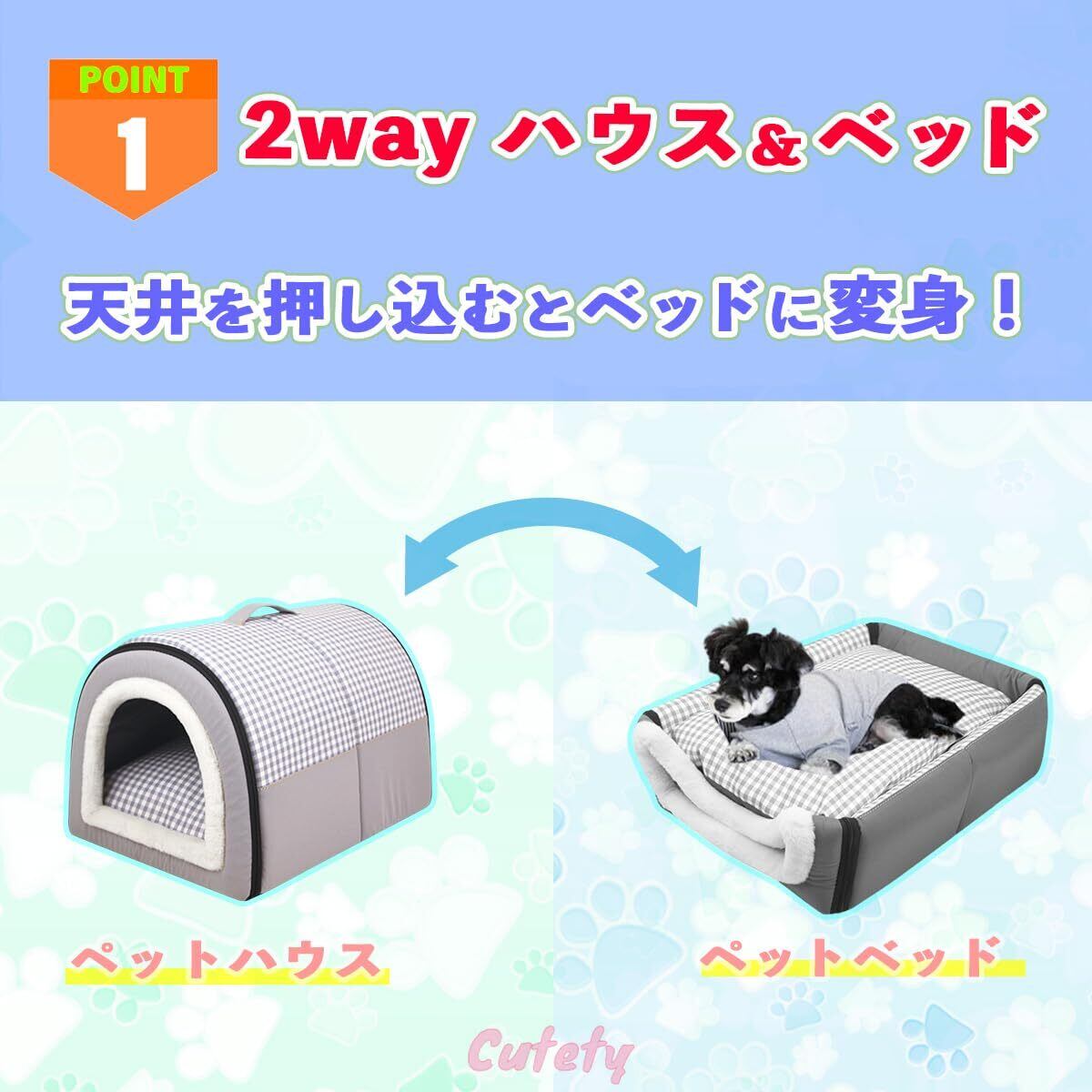 【2wayハウス&ベッド】天井を押し込むとペットベッドに変身!季節や場所に応じて、2つの使い方ができます。
