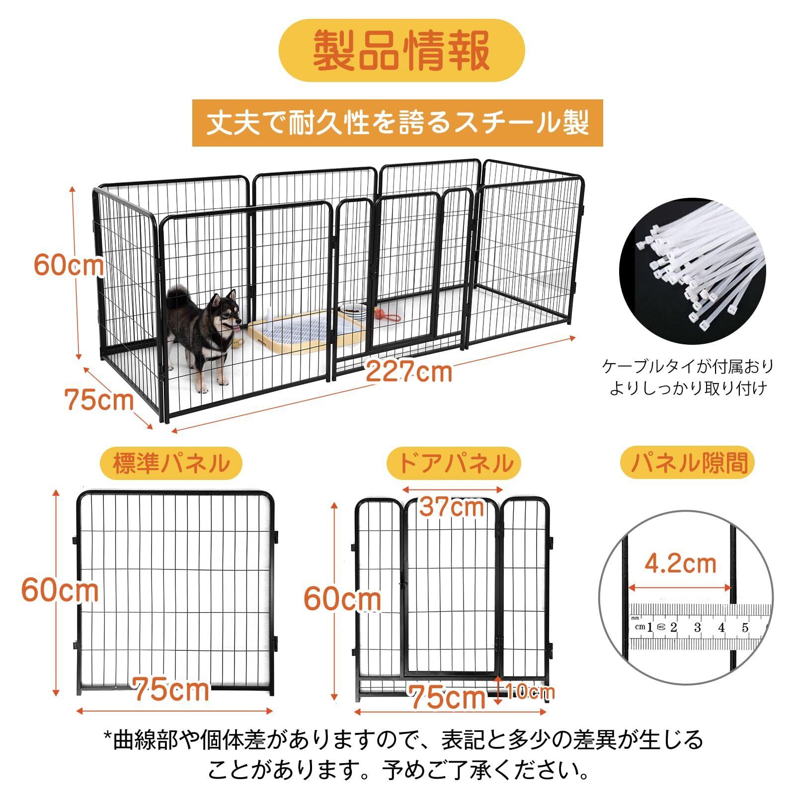 KIRATAKU 大型犬 サークル スチール製 ペットサークル 犬用サークル 犬用フェンス 犬 ゲージ 大型 室内 60/80/98CM 室外兼用 折り畳み式 組立簡単 複数連結可能 (ブラック, 高さ60CM, 8枚)