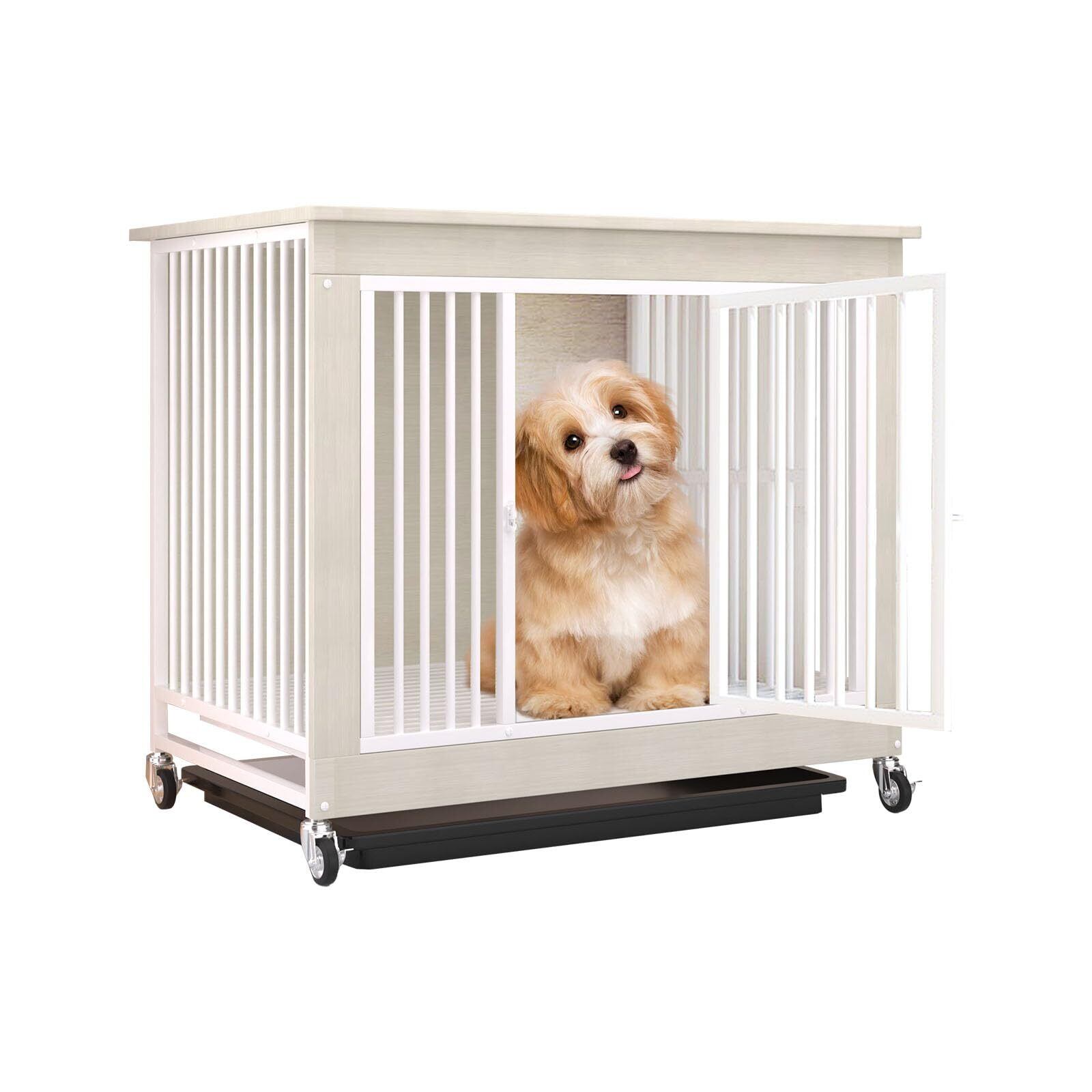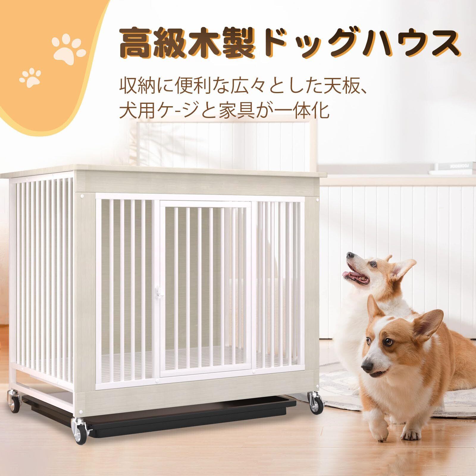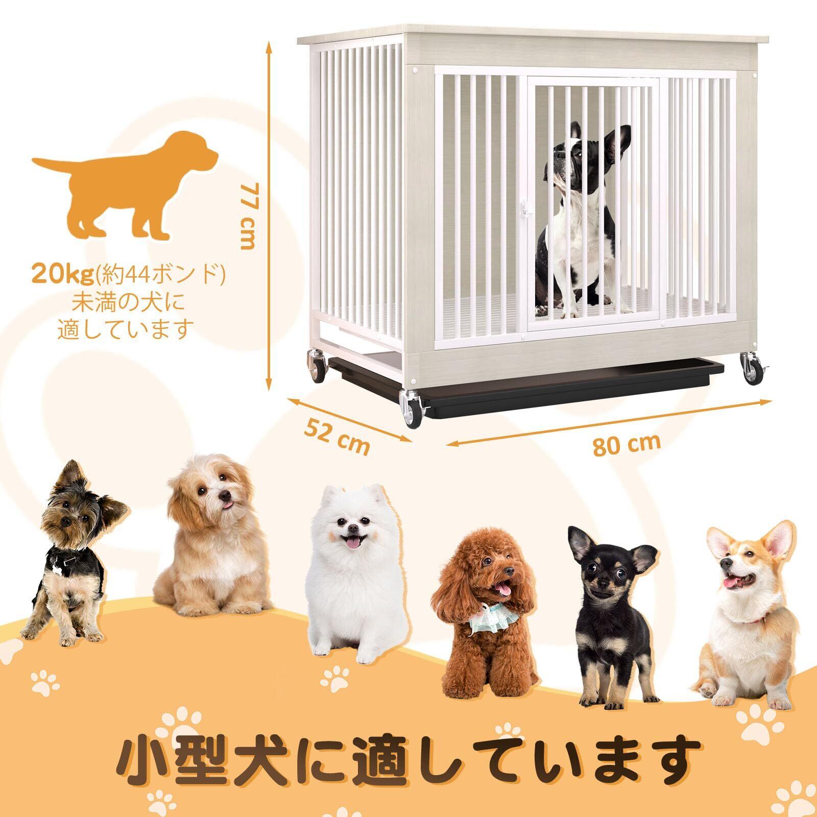 Fainyearn 犬ケージ 小型犬 屋根付き ウッディサークル 犬小屋 中型犬 キャスター付き 木製 トレー付き 幅 80×奥行52×高さ77cm(ホワイト, S)