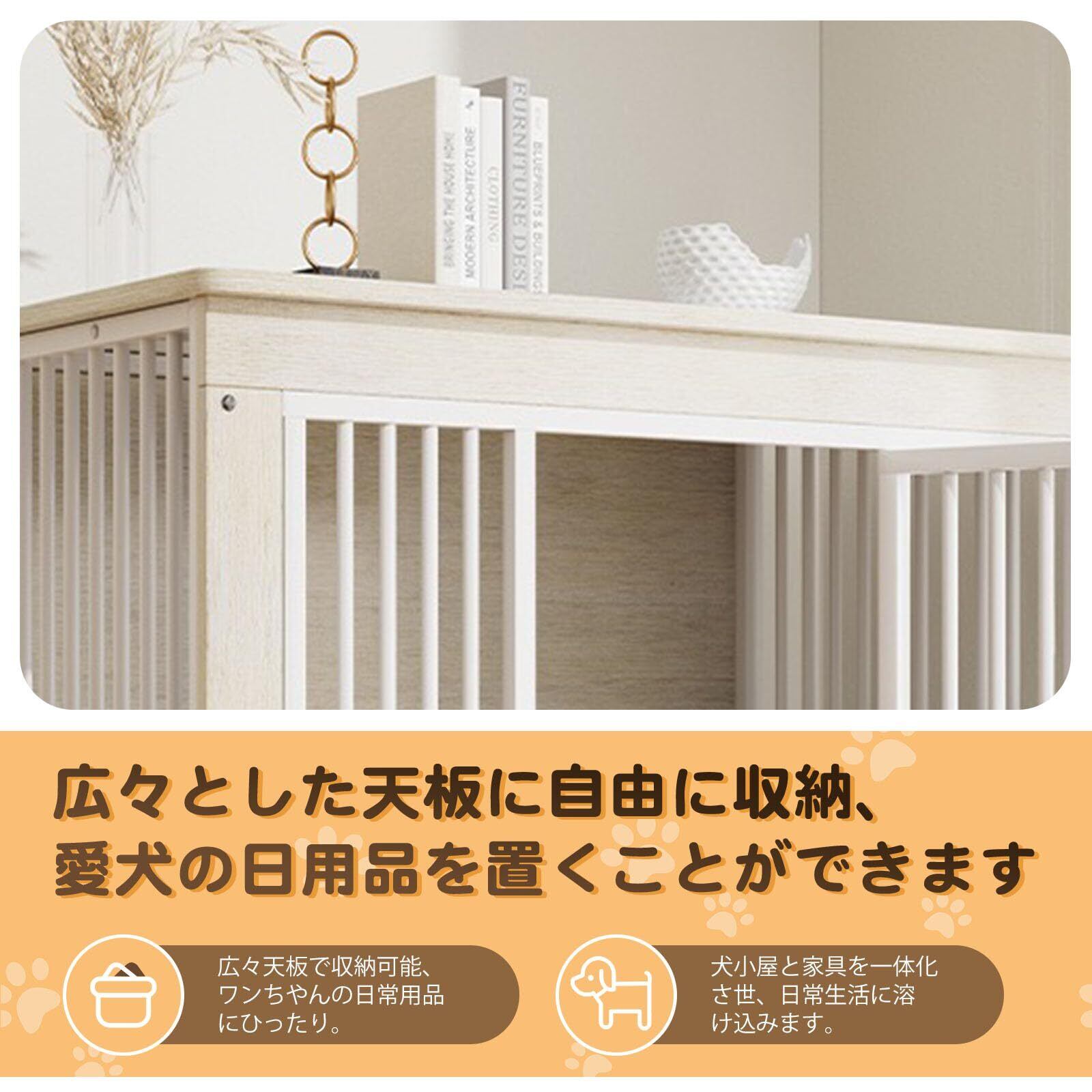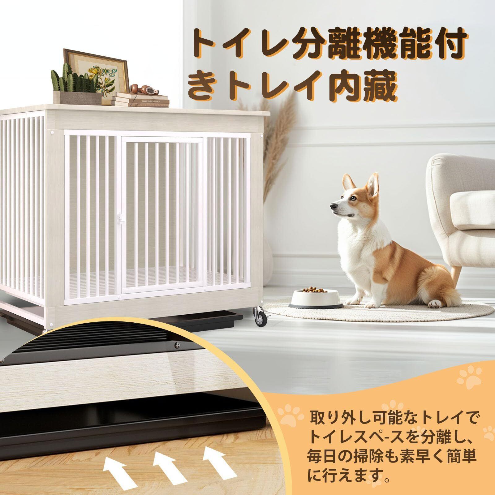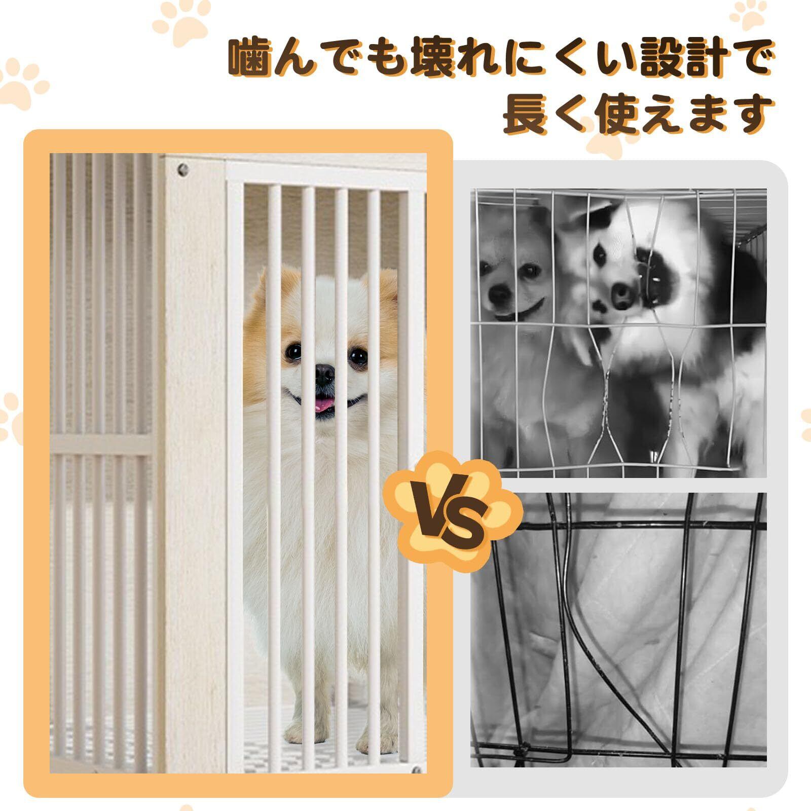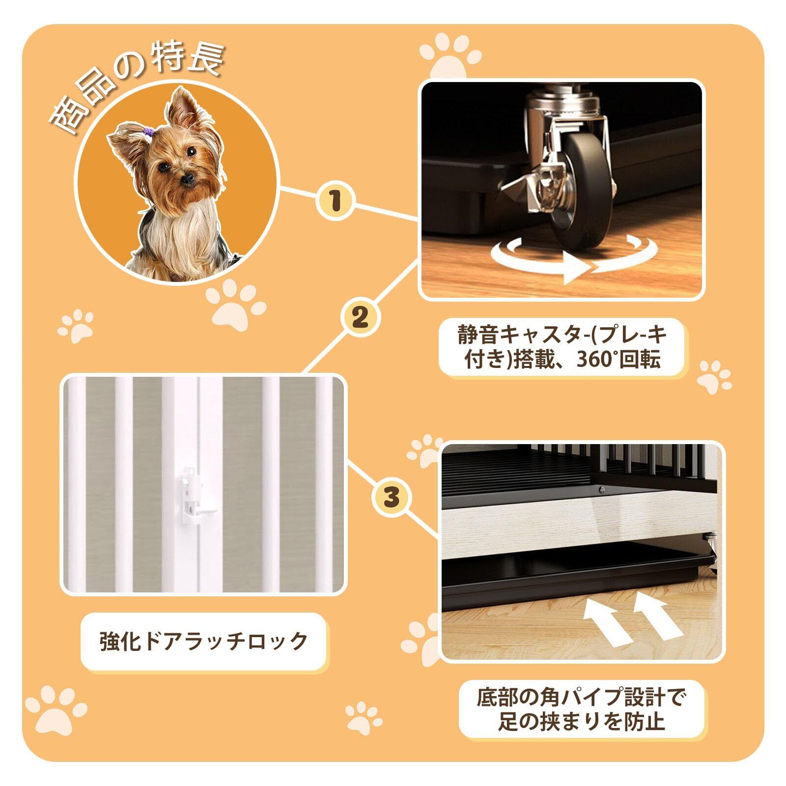 Fainyearn 犬ケージ 小型犬 屋根付き ウッディサークル 犬小屋 中型犬 キャスター付き 木製 トレー付き 幅 80×奥行52×高さ77cm(ホワイト, S)