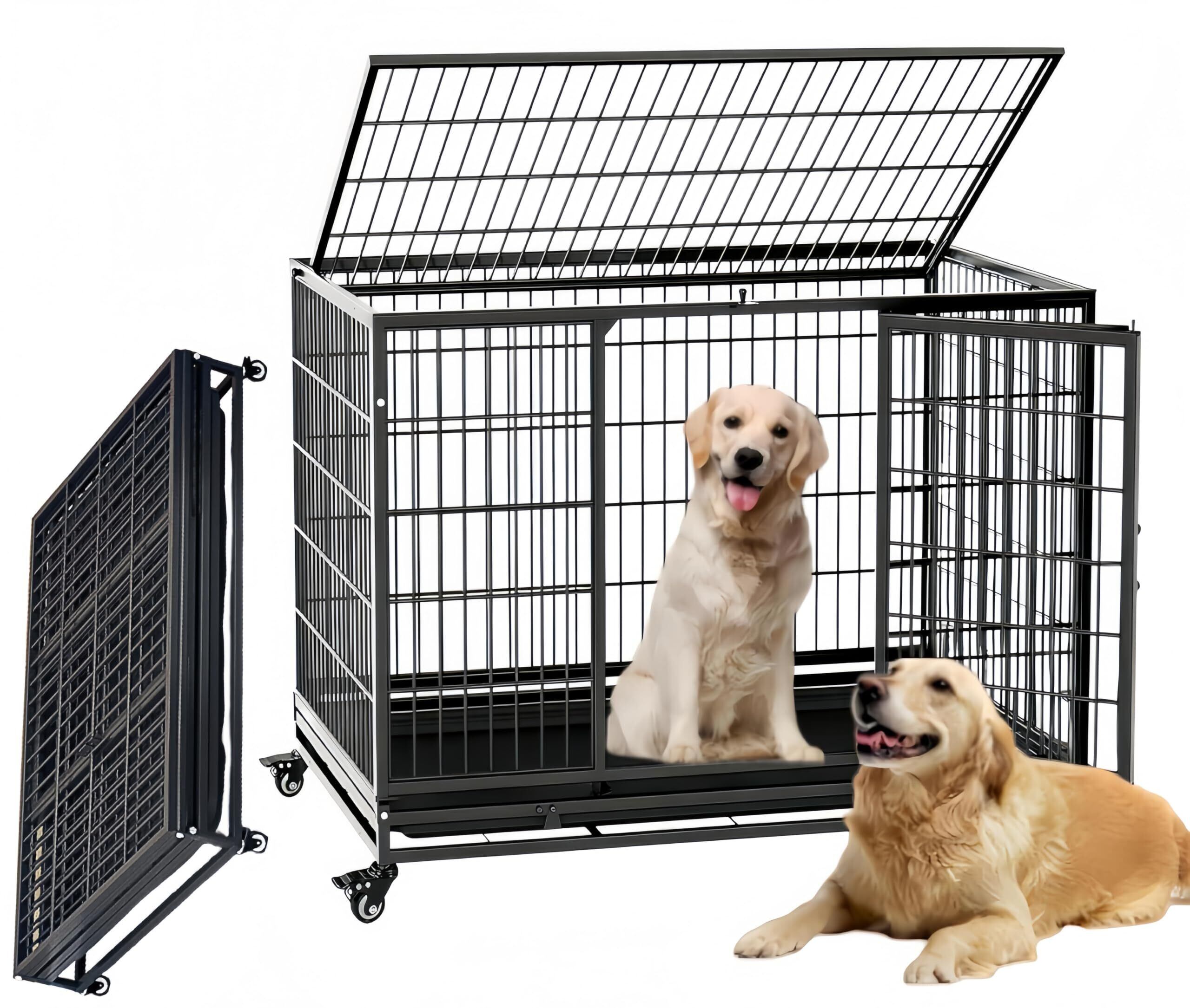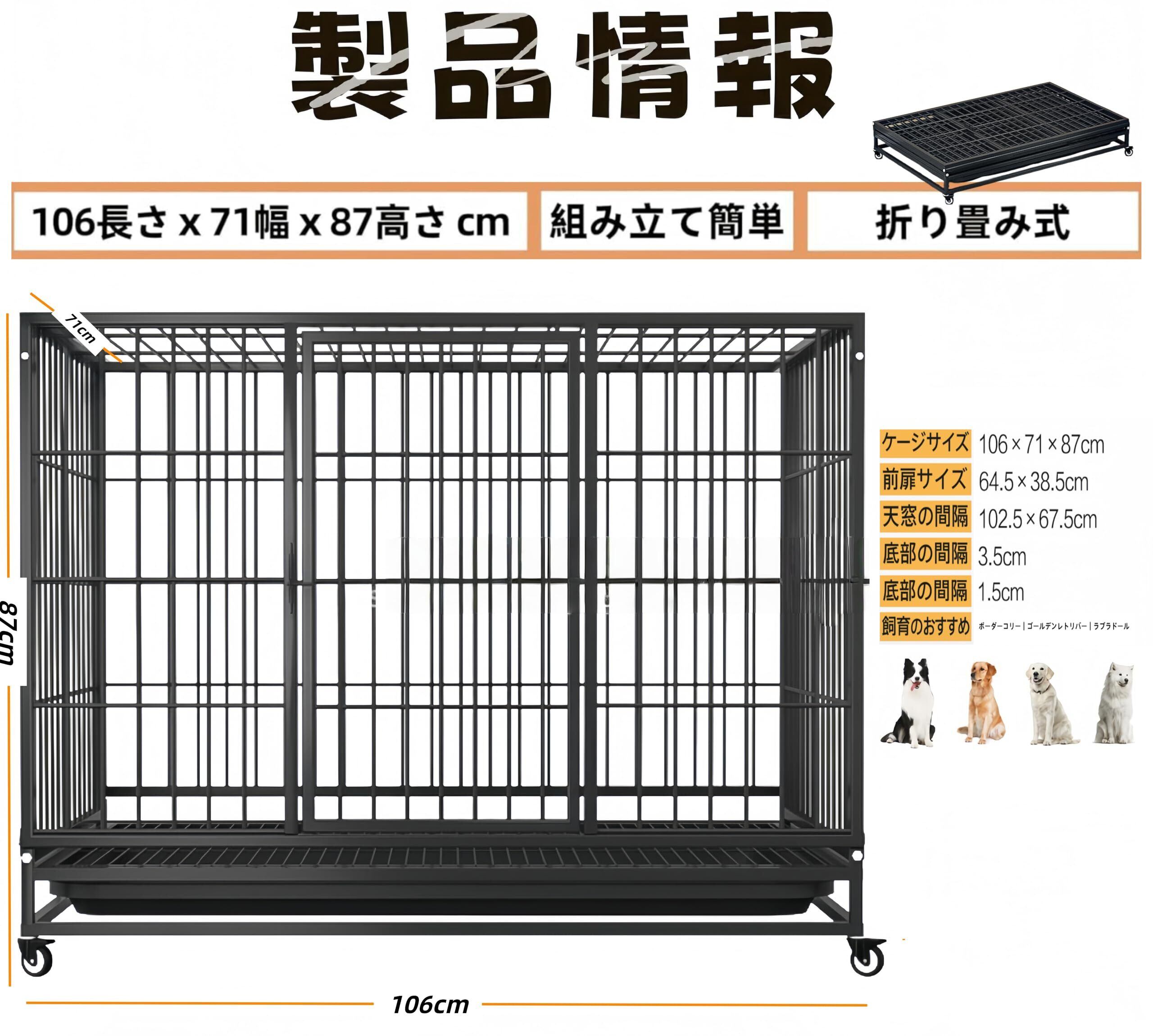 TUIYIDUO 犬 ケージ ペットケージ 大型 106x71x88cm 折りたたみ可能 犬 フェンス キャスター付き 引き出し式トレー 組立簡単 掃除簡単 小型 中型 大型犬用 屋根付き 脱出防止 室内外兼用 ペット用品 日本語説明書付き