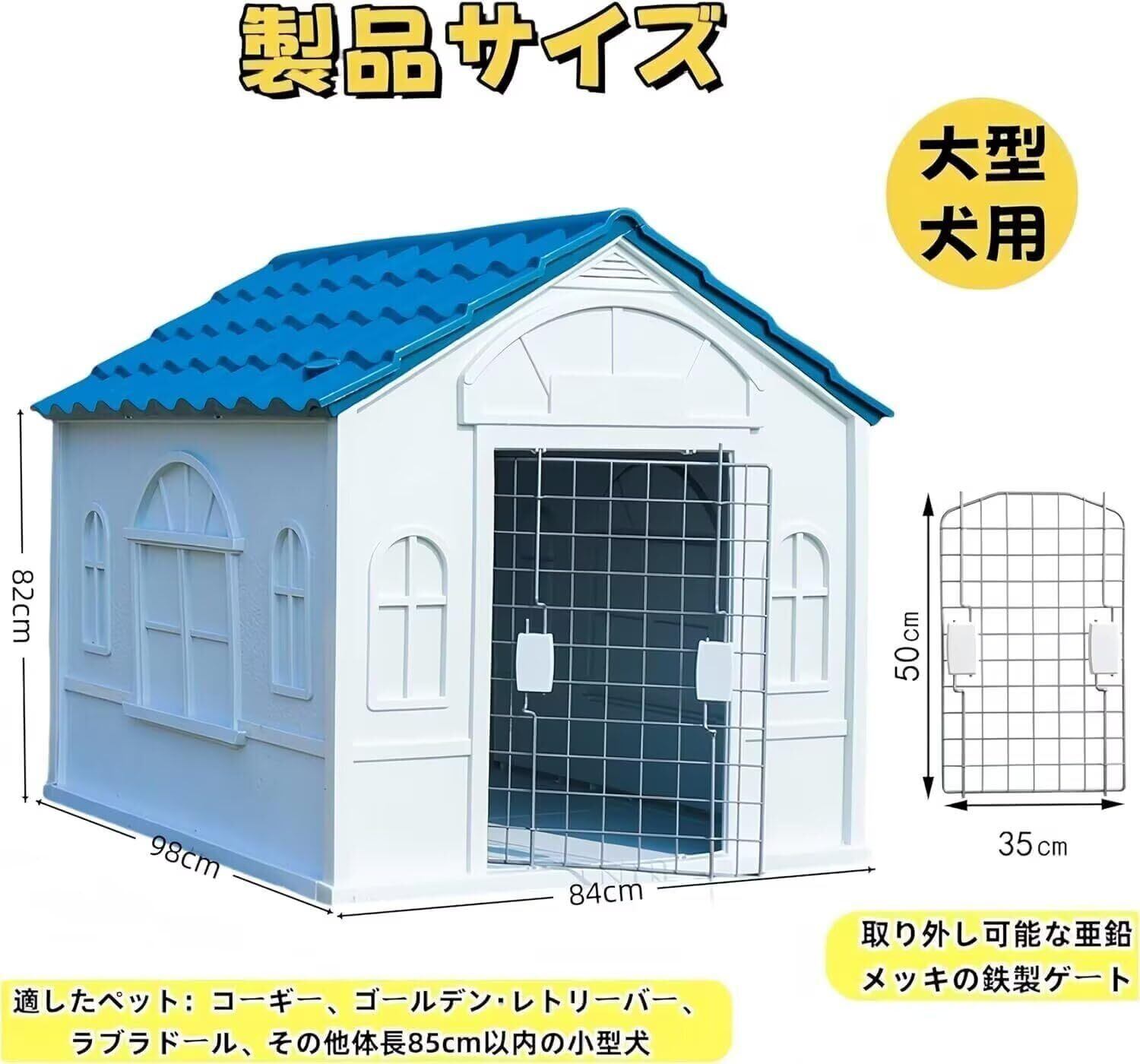 TUIYIDUO 犬小屋 屋外用 ドッグハウス ペットハウス L -98*84*82.8cm 小型犬 中型犬 大型犬用 屋根と鉄扉付き プラスチック 犬舎 通気性 防風 防雨 安定性と耐久性 組立簡単 水洗い 四季通用 家庭 テラス 裏庭 室内 屋外