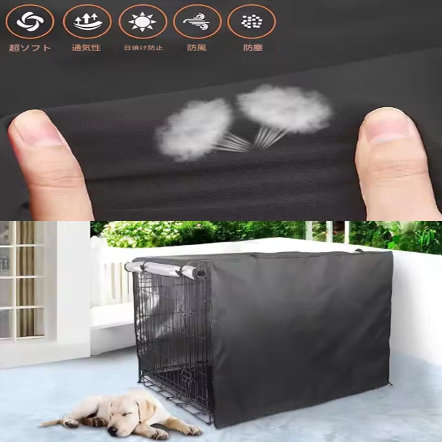 【実用的で清掃しやすい】犬のかごの蓋は清掃しやすく、湿った布で表面を拭き、乾いたタオルで乾かしたり、水で洗い流して日光の下で乾かしたりするだけです。固定式四角マジックシートの設計は、蓋付き犬ケージと家庭用犬ケージの間を強固に貼り合わせ、犬ケージに全面的な保護を提供する。