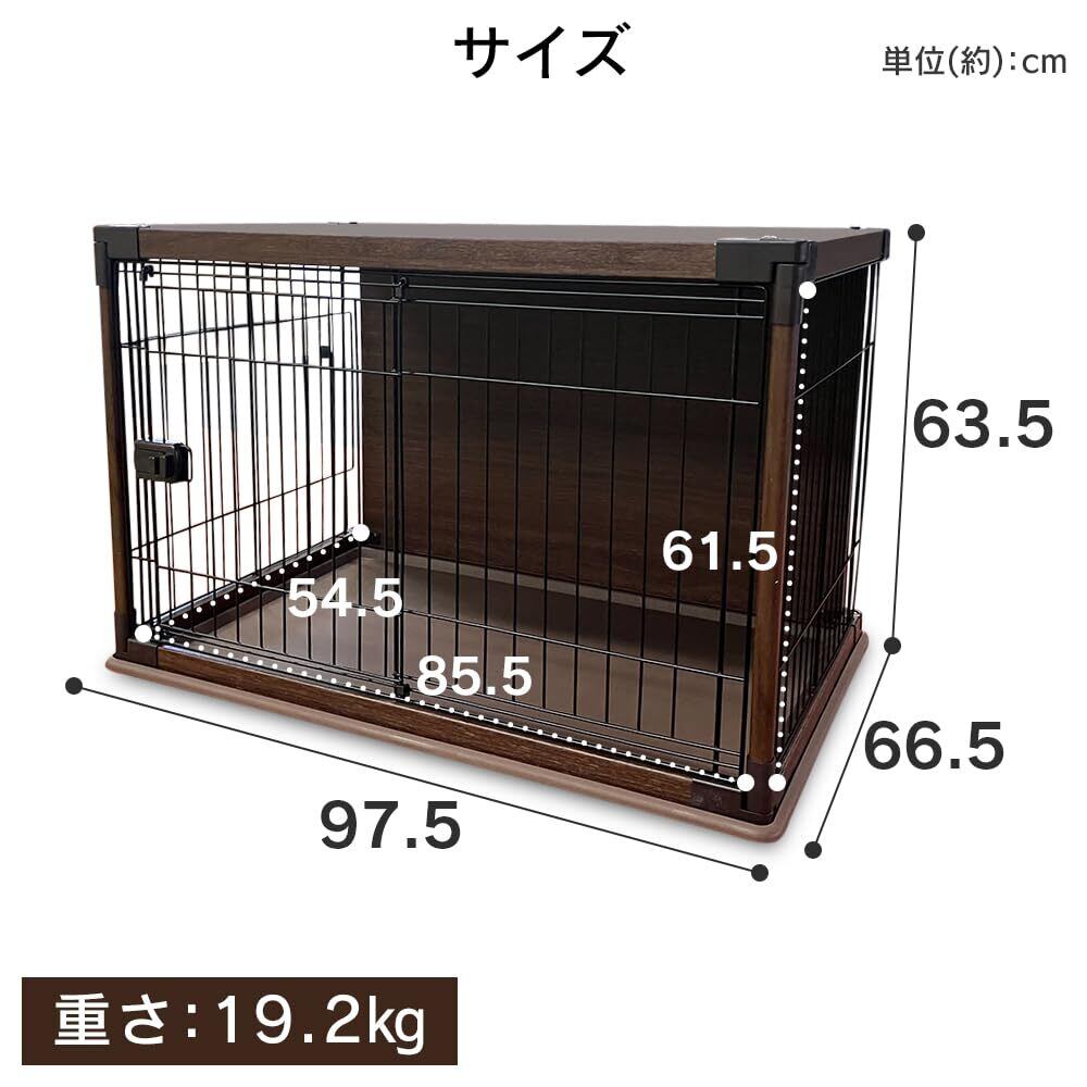 【商品説明】:わんちゃんのやすらぎ空間を考えたサークルです。 屋根と背面のパネルが穴ぐらのような空間を演出。 温かみのある木目調のデザインで、インテリアに調和します。 天板には物を置くことができるので わんちゃん専用アイテムを1か所にまとめて置いておけます。 入口は、スムーズに開閉できるスライド式。 ロックをつまんでスライドするだけで、スムーズに開閉できます。 プラスチック製トレーは、水で丸洗いが可能。 組み立ては、サークルの四隅に固定ピンをさしこむだけ。 簡単に組み立てることができます。 ※お客様組立て"