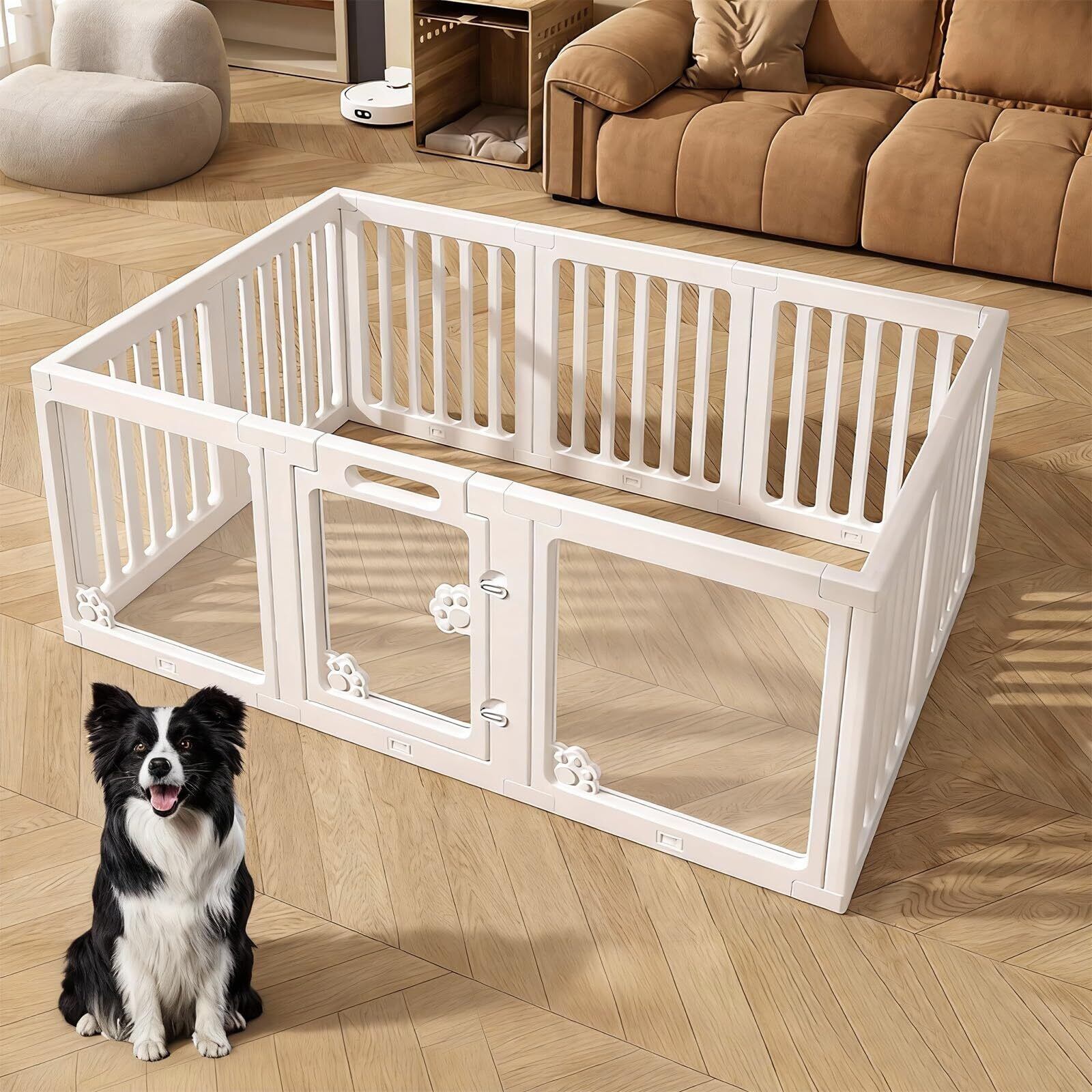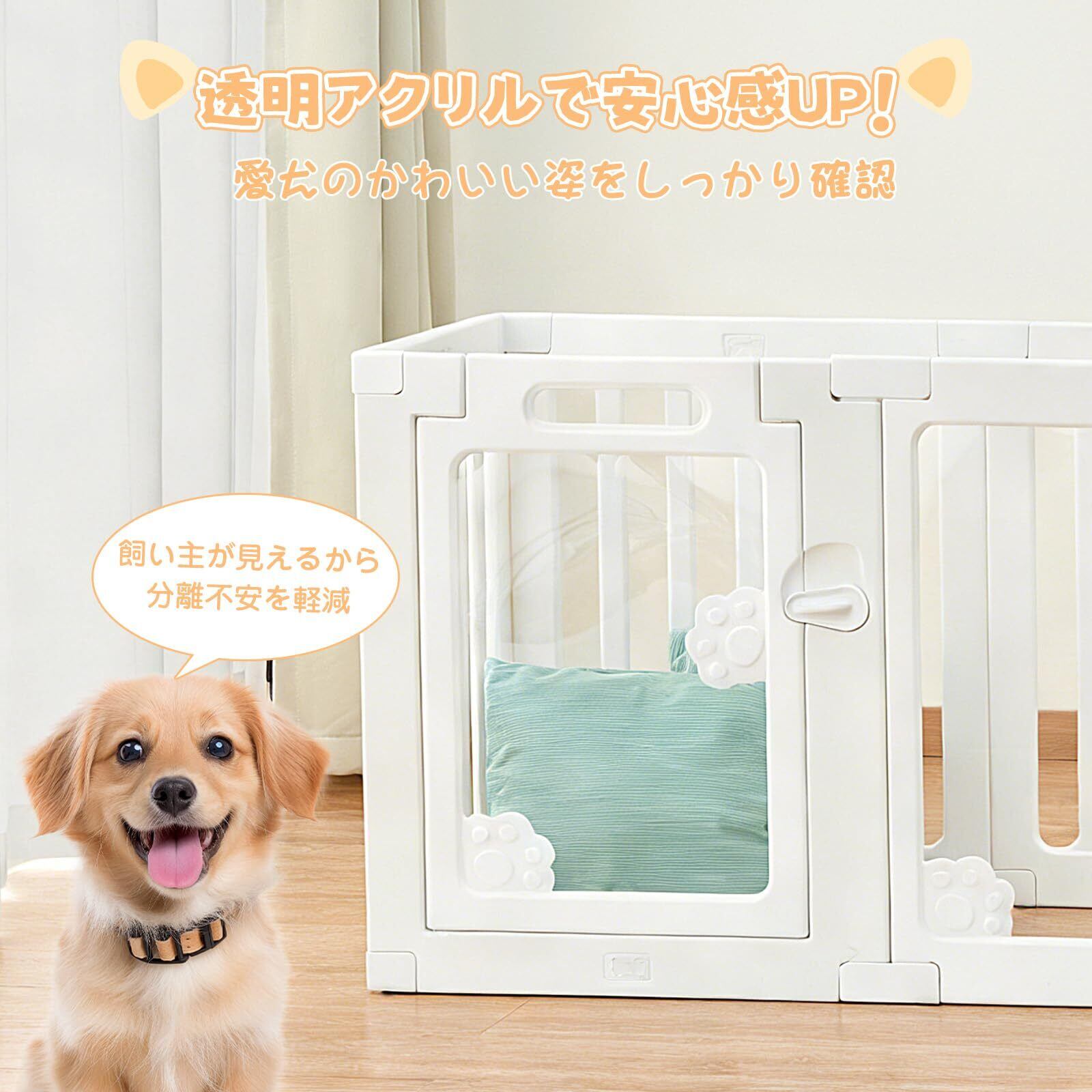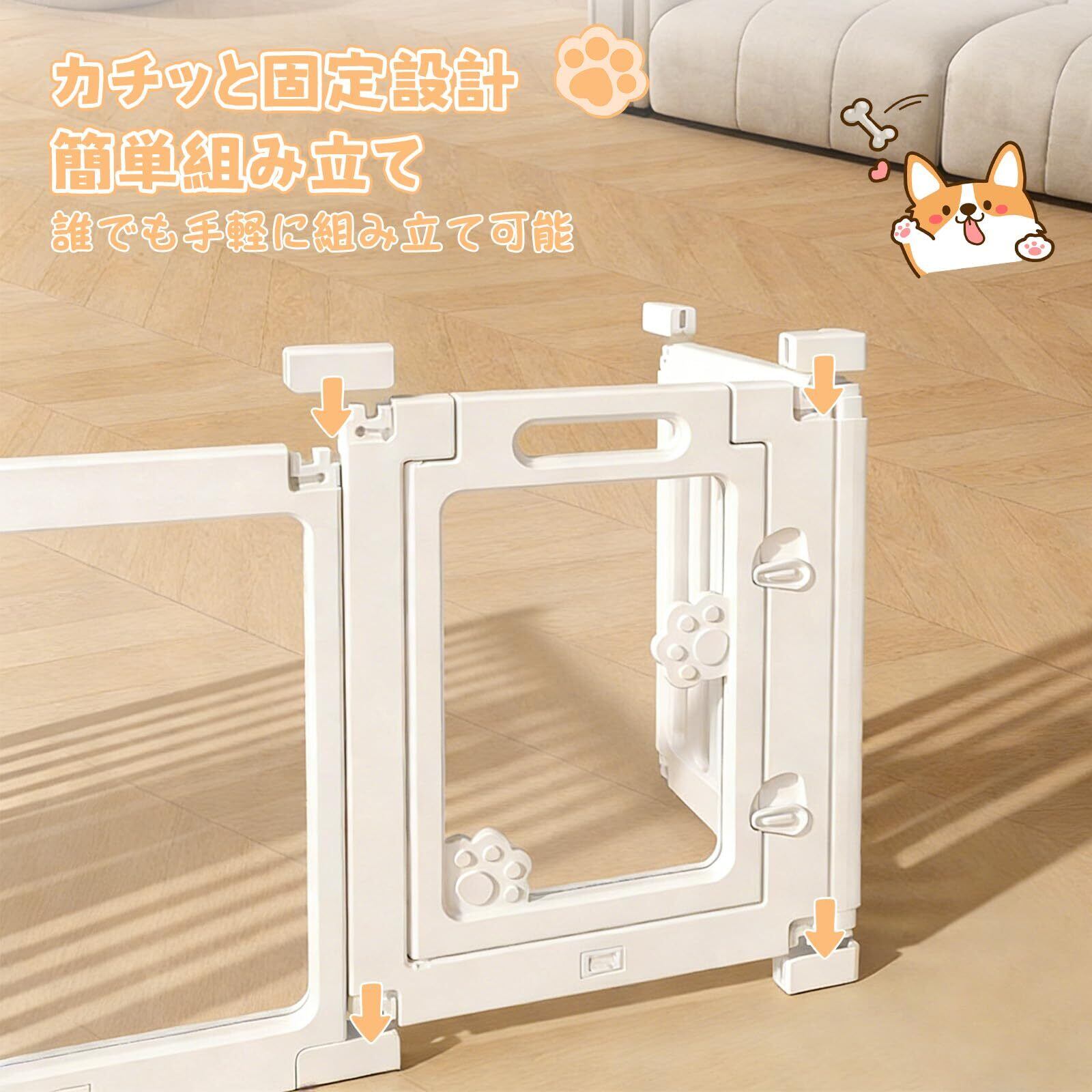 Essgudo ペットフェンス 犬用フェンス 中型犬 小型犬 ドア付き 折りたたみ 透明 アクリ パネル 猫爪 高さ60cm 組立簡単 逃げ防止 吸盤付き 滑り止め クリア 傷つきにくい 幅150×奥行100×高さ60cm