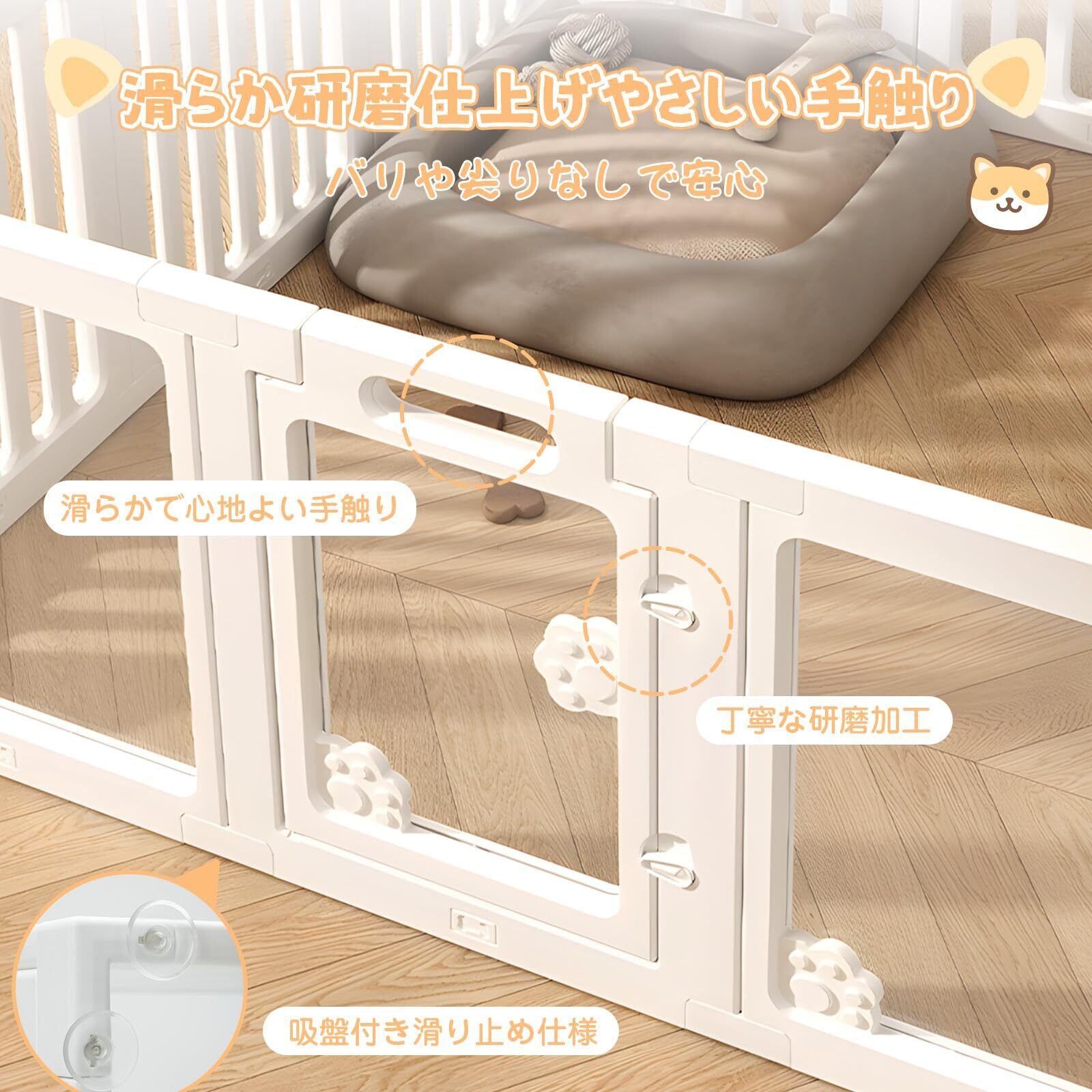 【滑り止め吸盤付き】底部には滑り止め吸盤が装備されており、ペットが動いてもフェンスが動く心配はありません。しっかりと地面に固定され、安定性を保ちます。