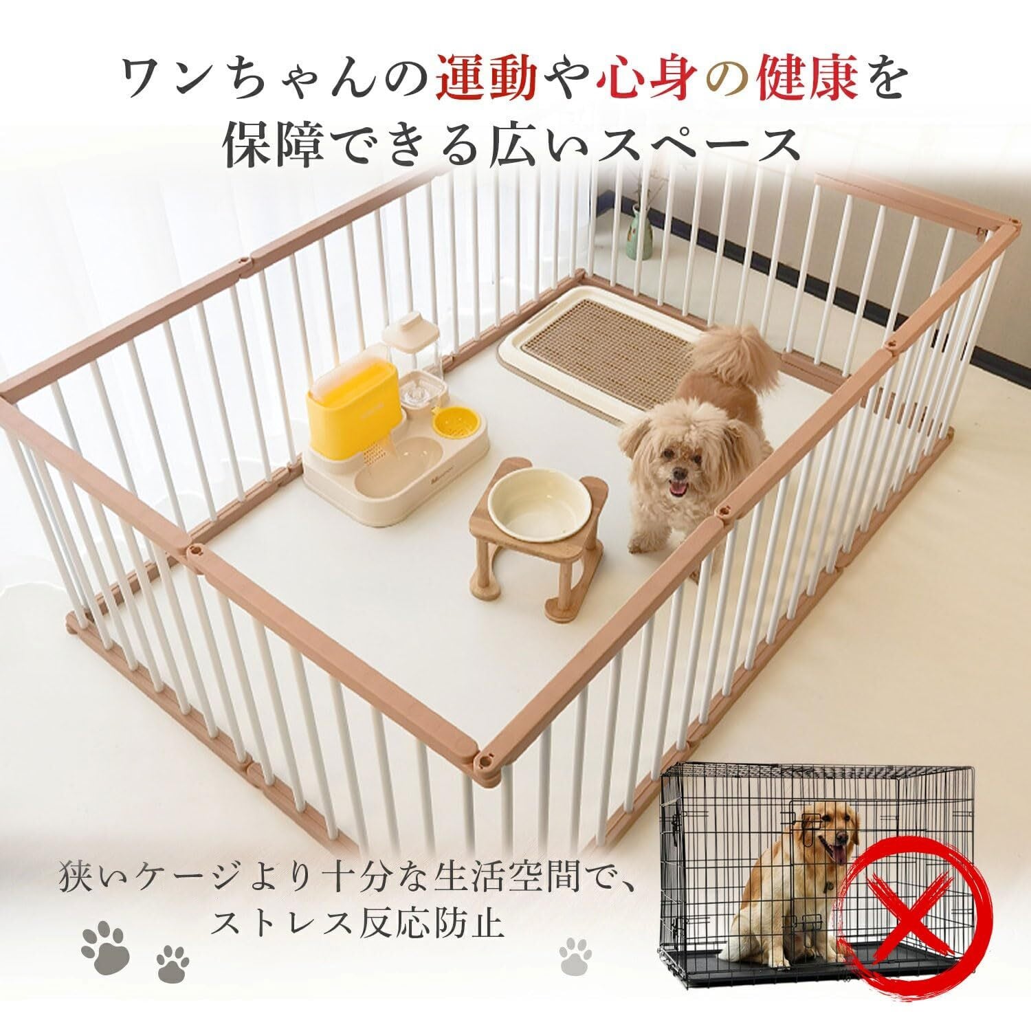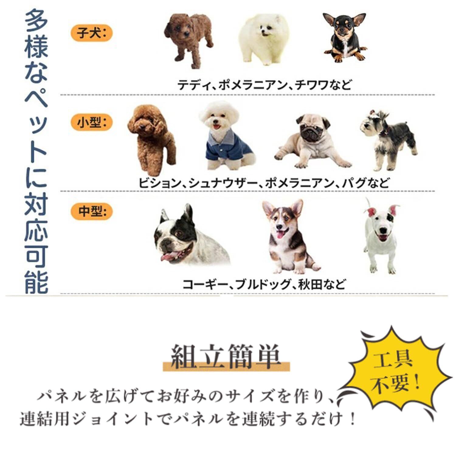 組み立ては非常に簡単で、特別な工具は不要です。移動も簡単なので、必要に応じて場所を変えることも可能です。高品質な素材を使用しているため、耐久性があり、長期間使用しても劣化しにくいです。特に活発なペットでも安心して使える頑丈さが魅力です。