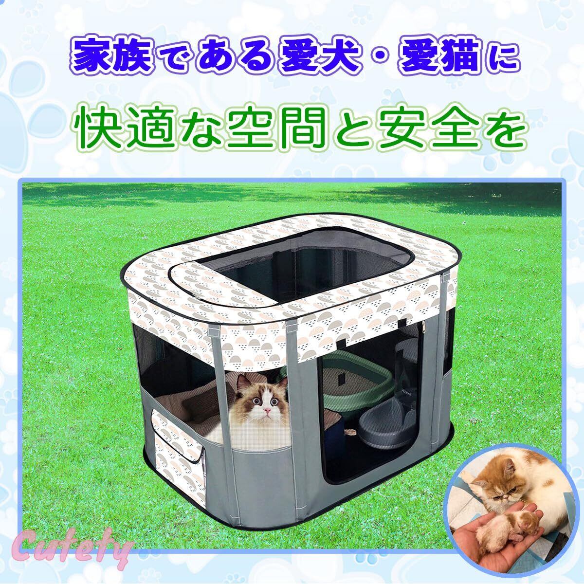 【Cutetyブランド】折りたたみペットサークル、折りたたみポール8本、持ち運び収納バッグ、わかりやすい組み立て説明書、メーカー(1年)