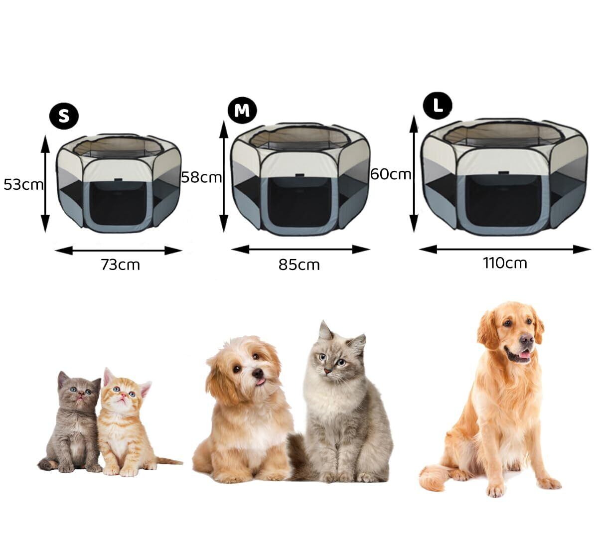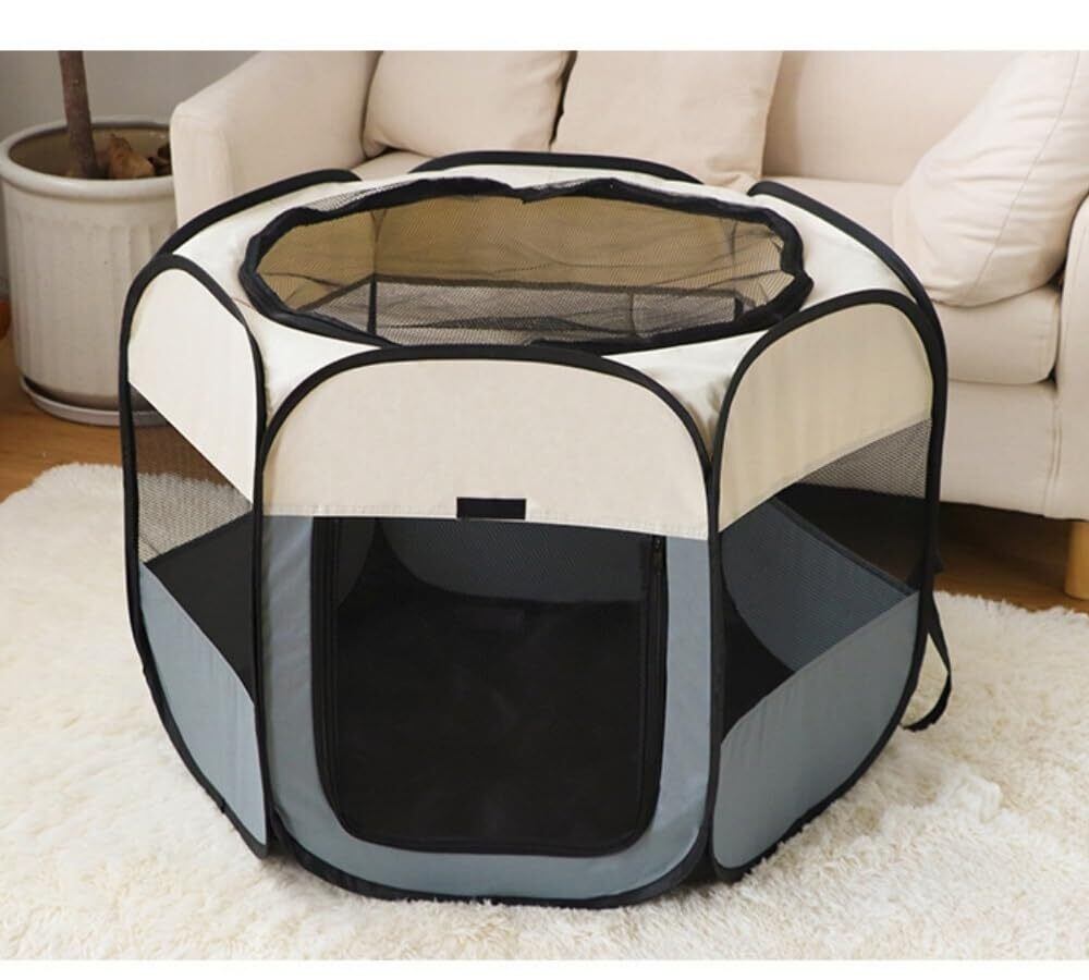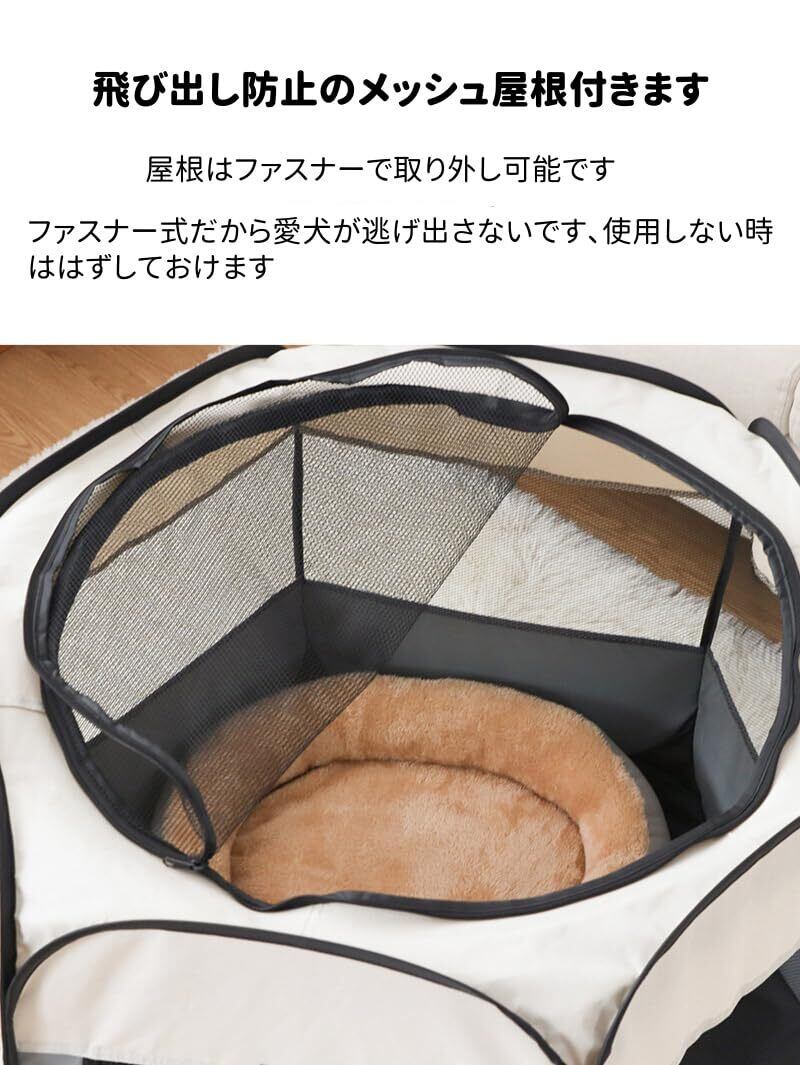 Benebomo 六角形 折りたたみ式 ペットサークル 組み立て不要 キャリーバッグ付き 猫 犬用 ケージ メッシュサークル 軽量 コンパクト 防災 通気性 室内外兼用 幅73cm×高さ53cm (S, グレー)