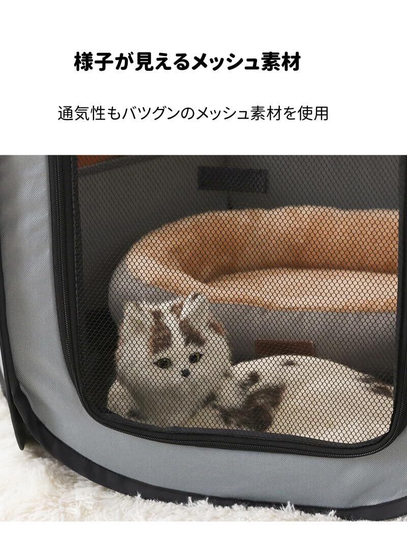 【色んな場所に適用】部屋の広いところに置いてはペットハウスとして使う、室外にペット関連のアウトドアの場合にもペットサークルとして活躍。ペットドライブにも後部席に置いて車載ペットキャリーバッグとして使えます。持ち手が付いてるので、歩いて持ち運べるタイプのペットハウス。