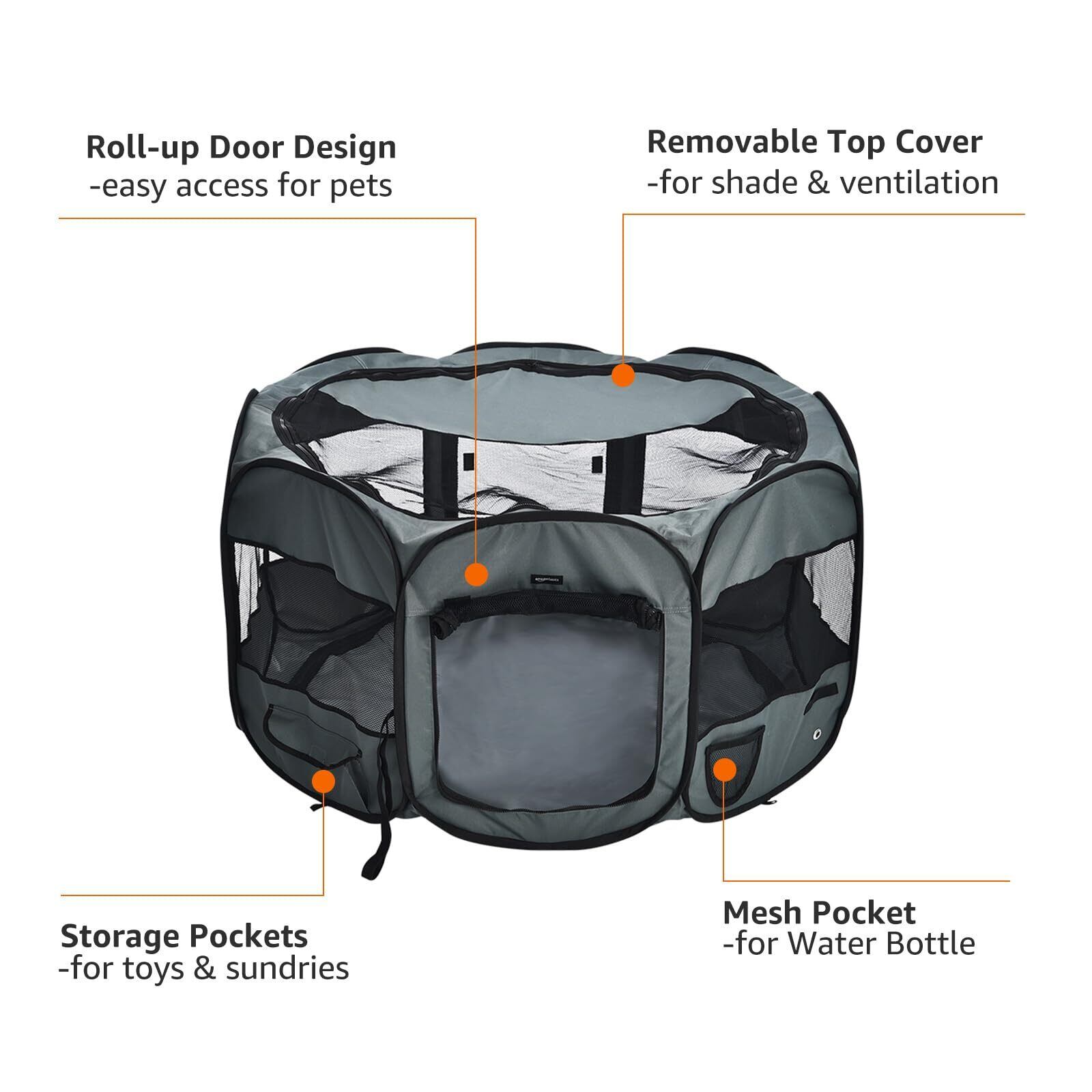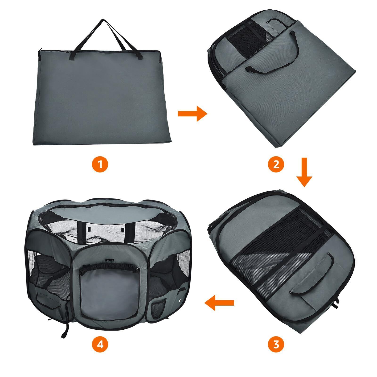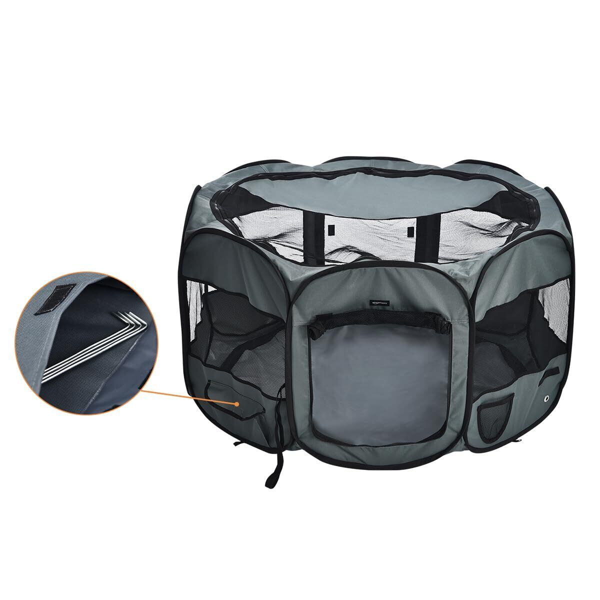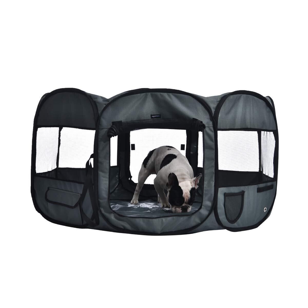 ベーシック ペットサークル 折り畳み式 収納バッグ付き ソフト トラベル用 八角形 グレー 114cm x 60cm