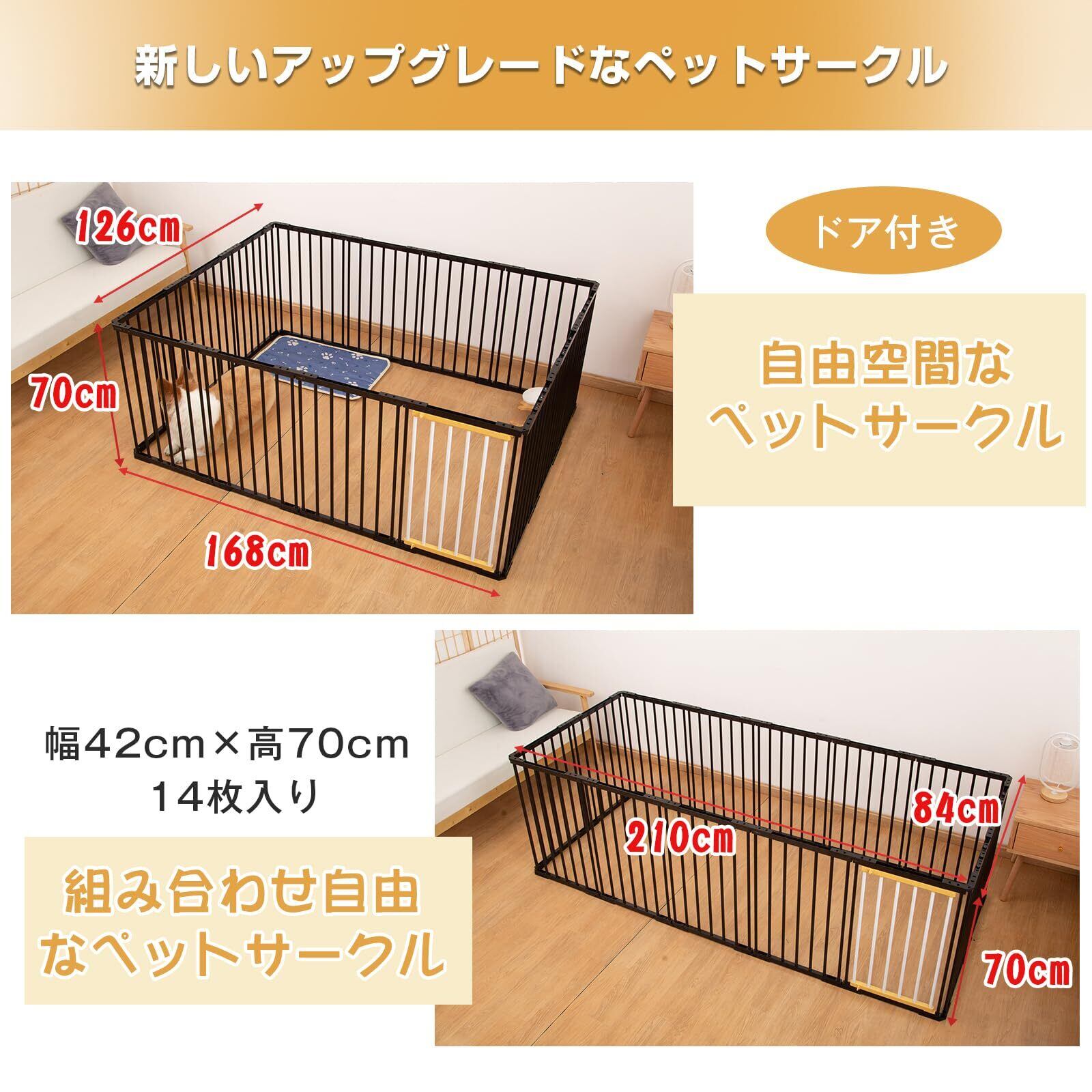 Shinyever ペットサークル 大型犬 ゲージ 幅210*奥行84*高70cm 犬 ゲージ 犬 サークル 中型犬 大型犬用ゲージ ペットケージ 組立簡単 室内外兼用 安定耐久 犬用サークル(210*84*70cm-14枚 ブラック)
