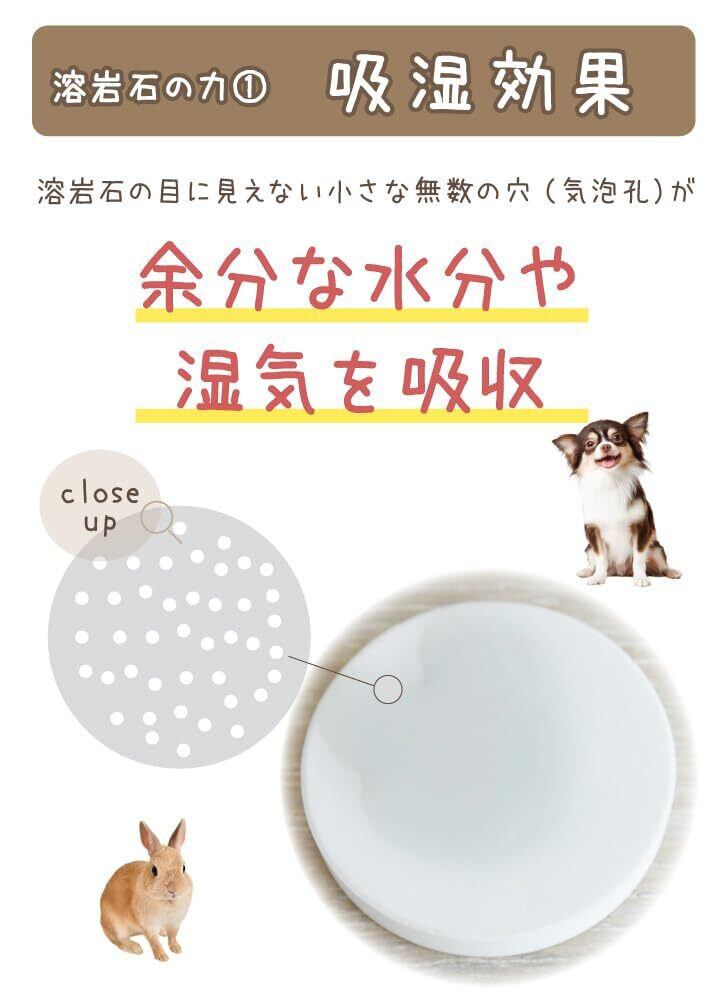 ●本来の目的以外でのご使用はおやめください。 ●溶岩石が成分の為、素材の特性上、表面上にムラ・軽微なキズなど・茶色や黒の斑点がある場合がございますが品質上問題はございませんのでご了承ください。 ●色のついた水分を吸収した場合はシミとして残る場合がございます。 ●溶岩石は割れ物です。取り扱いには十分ご注意ください。 ●お子やペットちゃんが口に入れないようにご注意ください。 ●直射日光の当たる場所での放置はおやめください。 ●吸湿力には限りがあります。心配な方は月1回程度の陰干しと2年に1回程度の交換をおすすめいたします。 ●溶岩石はカビが生えないことをお約束するものではございません。