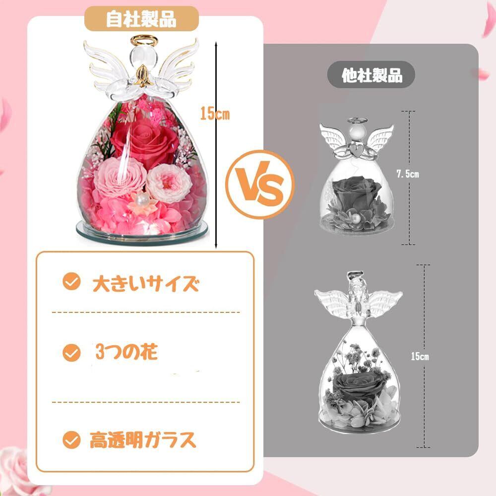 【天使のバラ】この天使の形をしたプリザーブドローズは、永遠の想いと愛を象徴しています。天使モチーフは、守護、道しるべ、思いを伝える、愛を引き寄せる、など人々を幸福へと導いてくれると言われています。