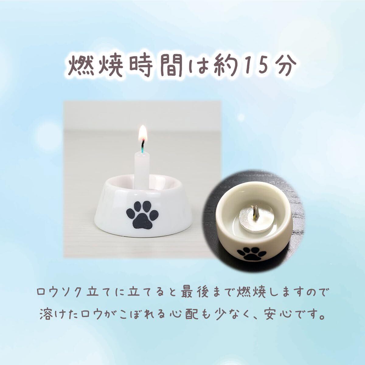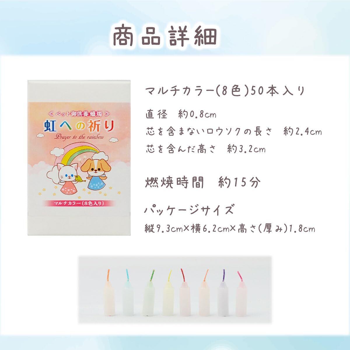 8色のカラフルな蝋燭で、大好きなペットにお祈りを。