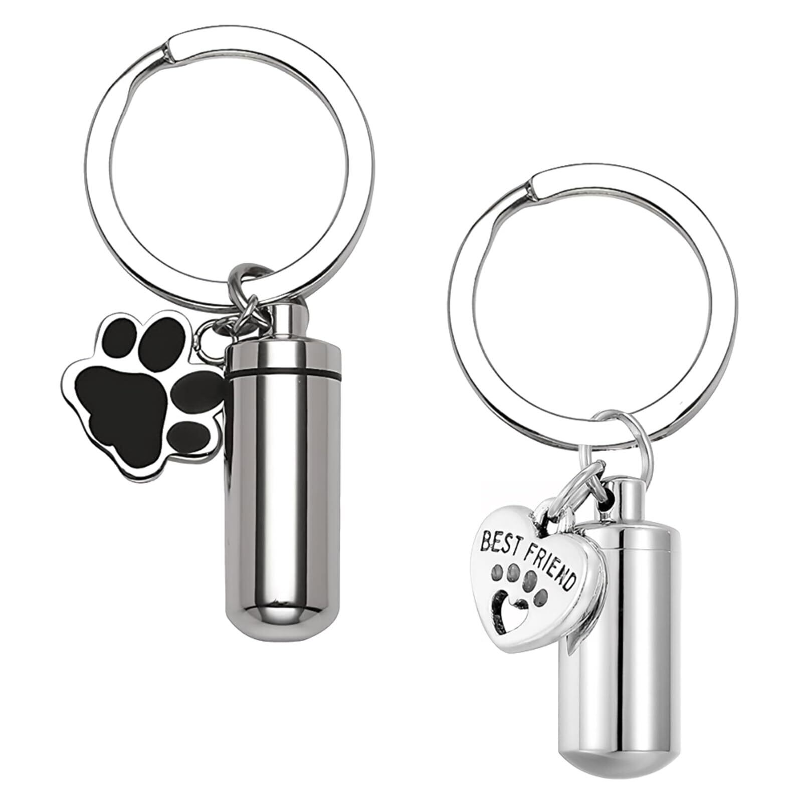 [KDSSYFT] キーホルダー遺骨入れ 2個入り 骨壷 遺骨 キーホルダー ロケットペンダント メモリアルペンダント カプセル 手元供養 骨壺分骨用 犬猫用メモリアル用品 (ぎんいろ)