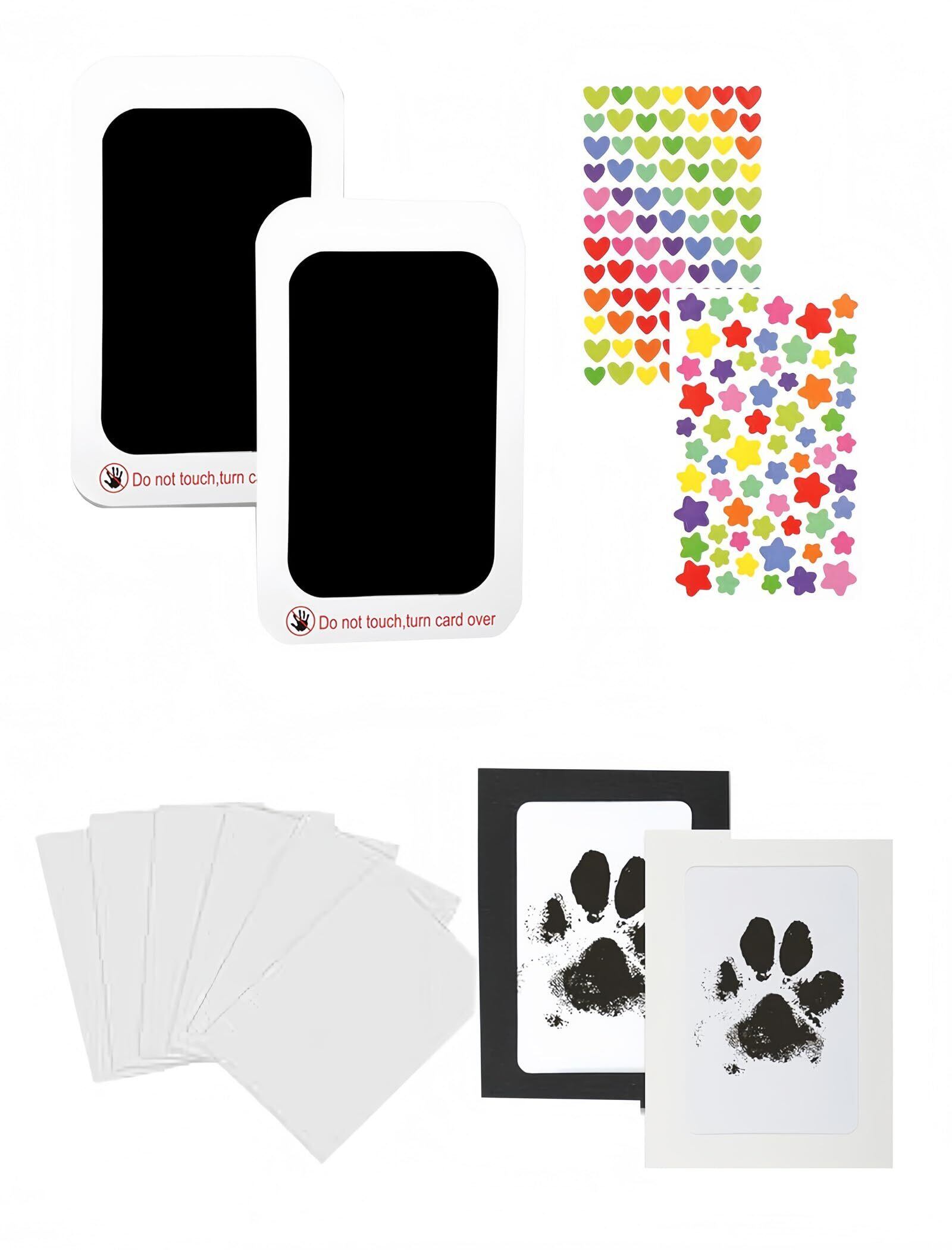 ペット足あとスタンプキット 2個セット|専用カード6枚|汚れず簡単に手足型記録|猫犬用 記念アイテム|安全・無毒素材|プレゼントに