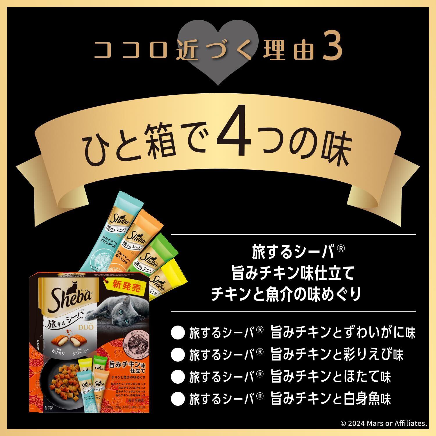 シーバ デュオ 成猫用 旅するシーバ 旨みチキン味仕立て チキンと魚介の味めぐり 200g(20g×10袋)×4箱 ドライフード おやつ カリカリ 総合栄養食 キャットフード 猫 Sheba DUO 小分け 小袋 まとめ買い