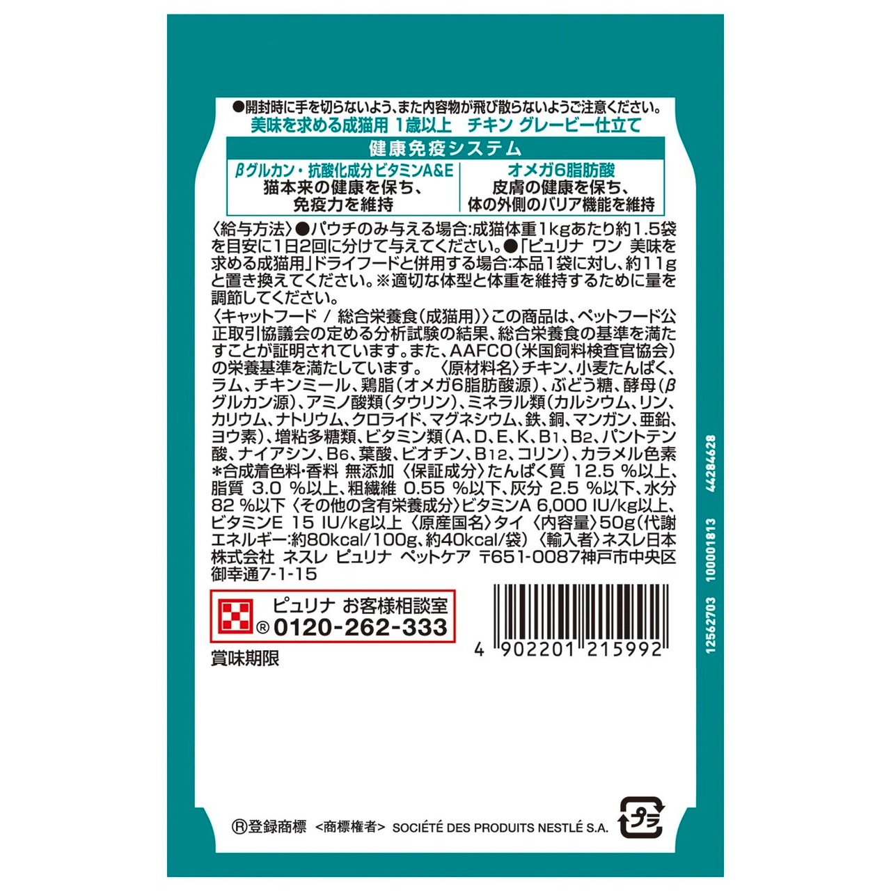 ピュリナワン キャット パウチ 美味を求める成猫用 1歳以上 チキングレービー仕立て 50g x12袋
