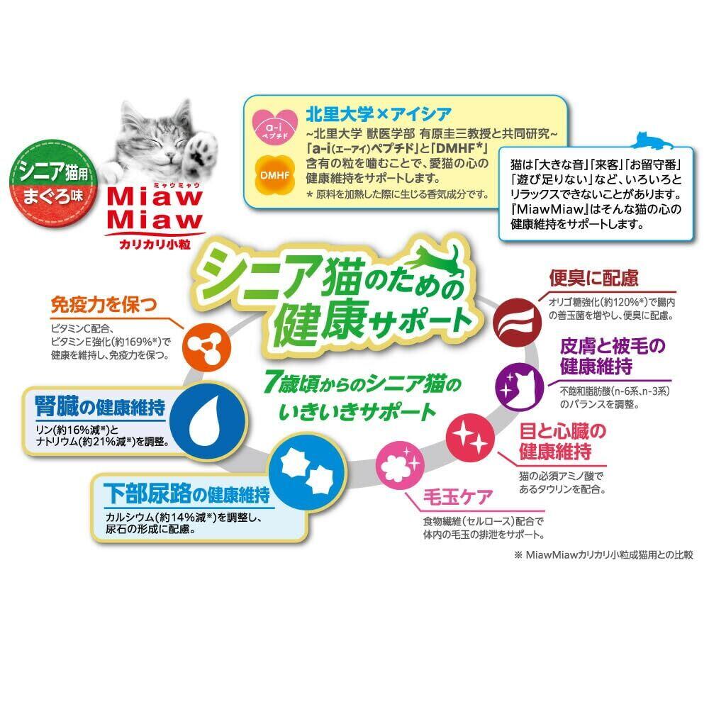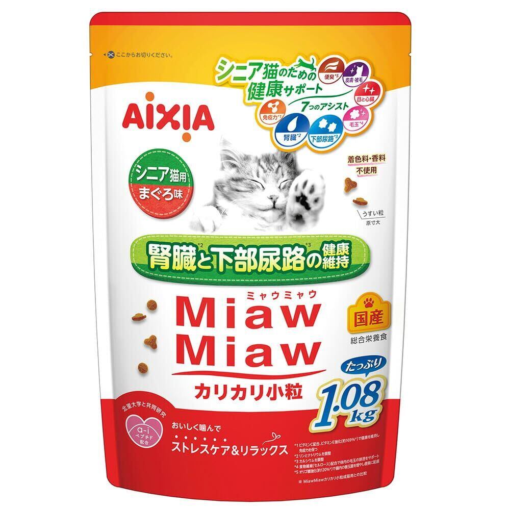 ミャウミャウ (MiawMiaw) カリカリ 小粒 腎臓と下部尿路の健康維持 1.08kg シニア猫用 まぐろ味 キャットフード ドライフード
