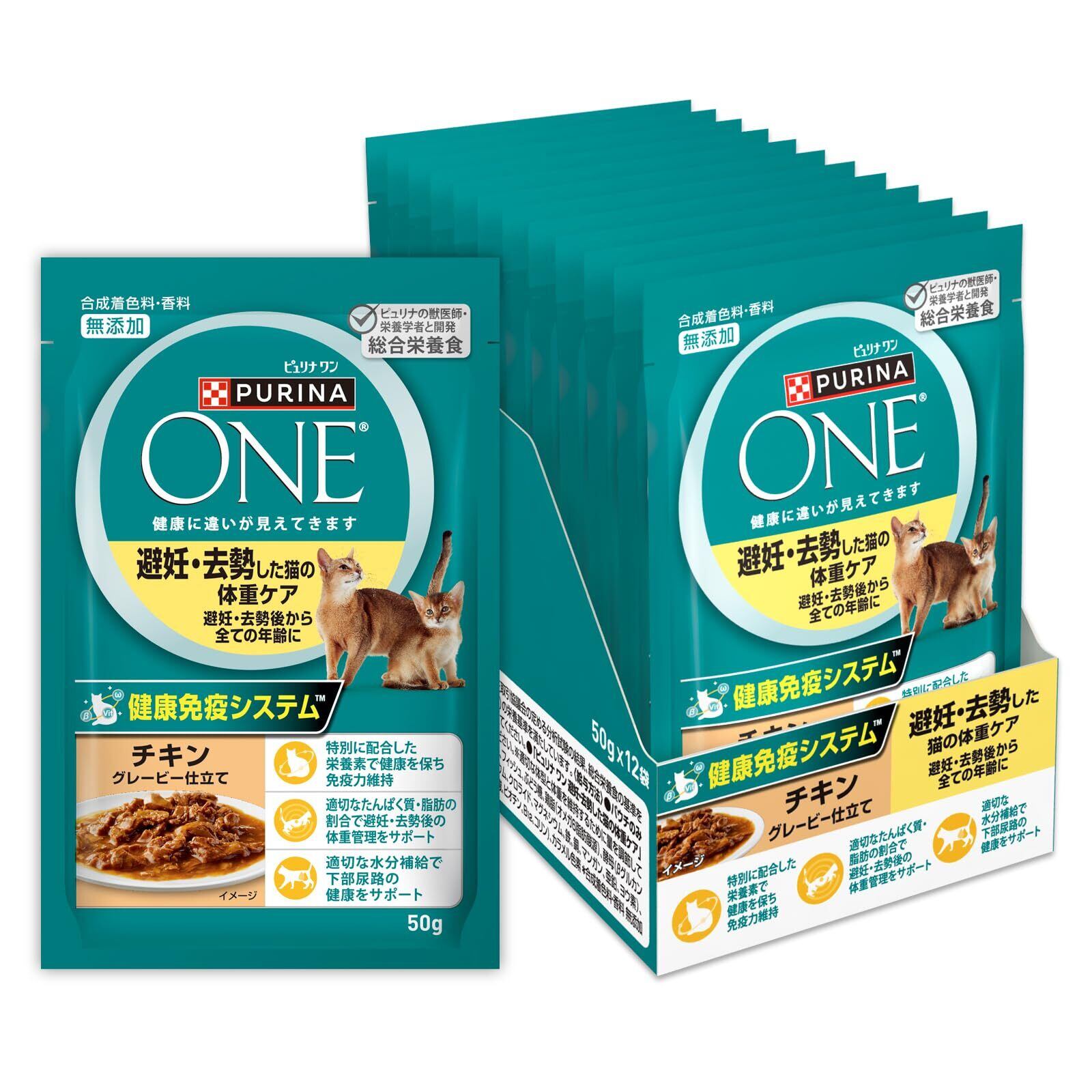 ピュリナワン キャット パウチ 避妊去勢した猫の体重ケア チキングレービー仕立て 50g x12袋