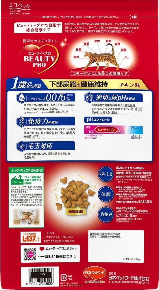 ビューティープロ キャットフード 下部尿路の健康維持 1歳から チキン味 1.4kg 【獣医師監修】 【国産】 【小分包装】
