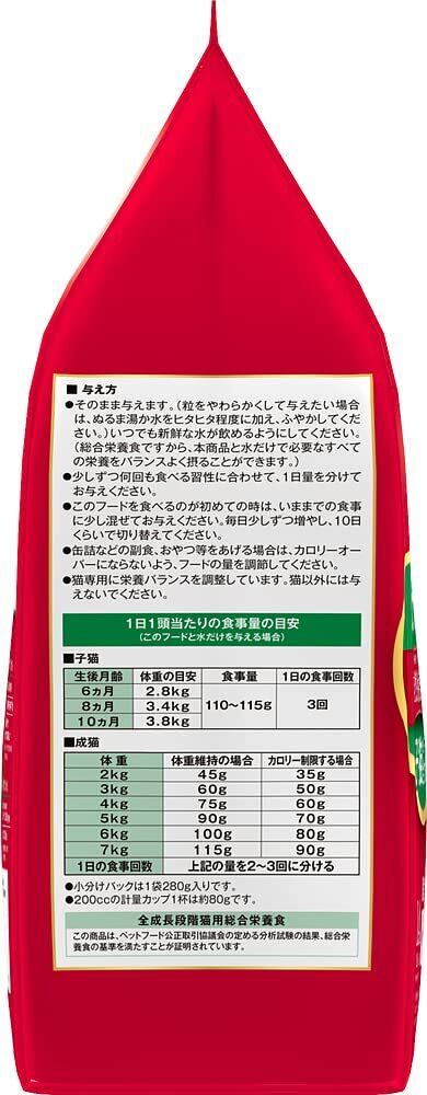 子猫から使える避妊・去勢後用。たんぱく質量は維持し、脂肪分約20%カットしたおいしいフィッシュ味。