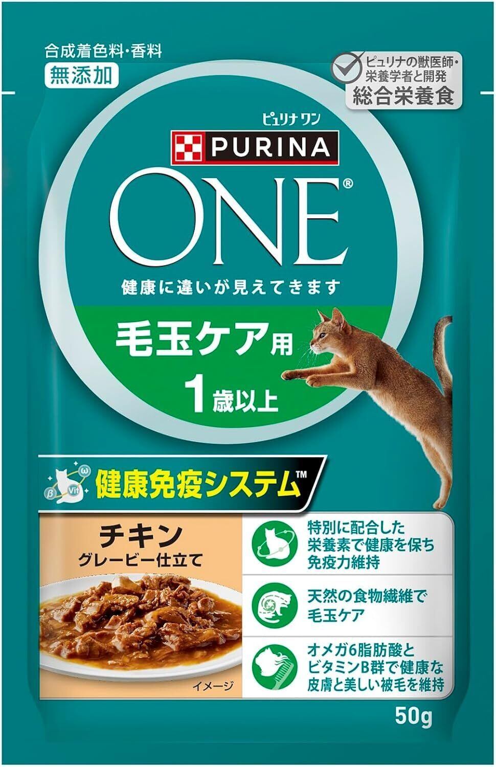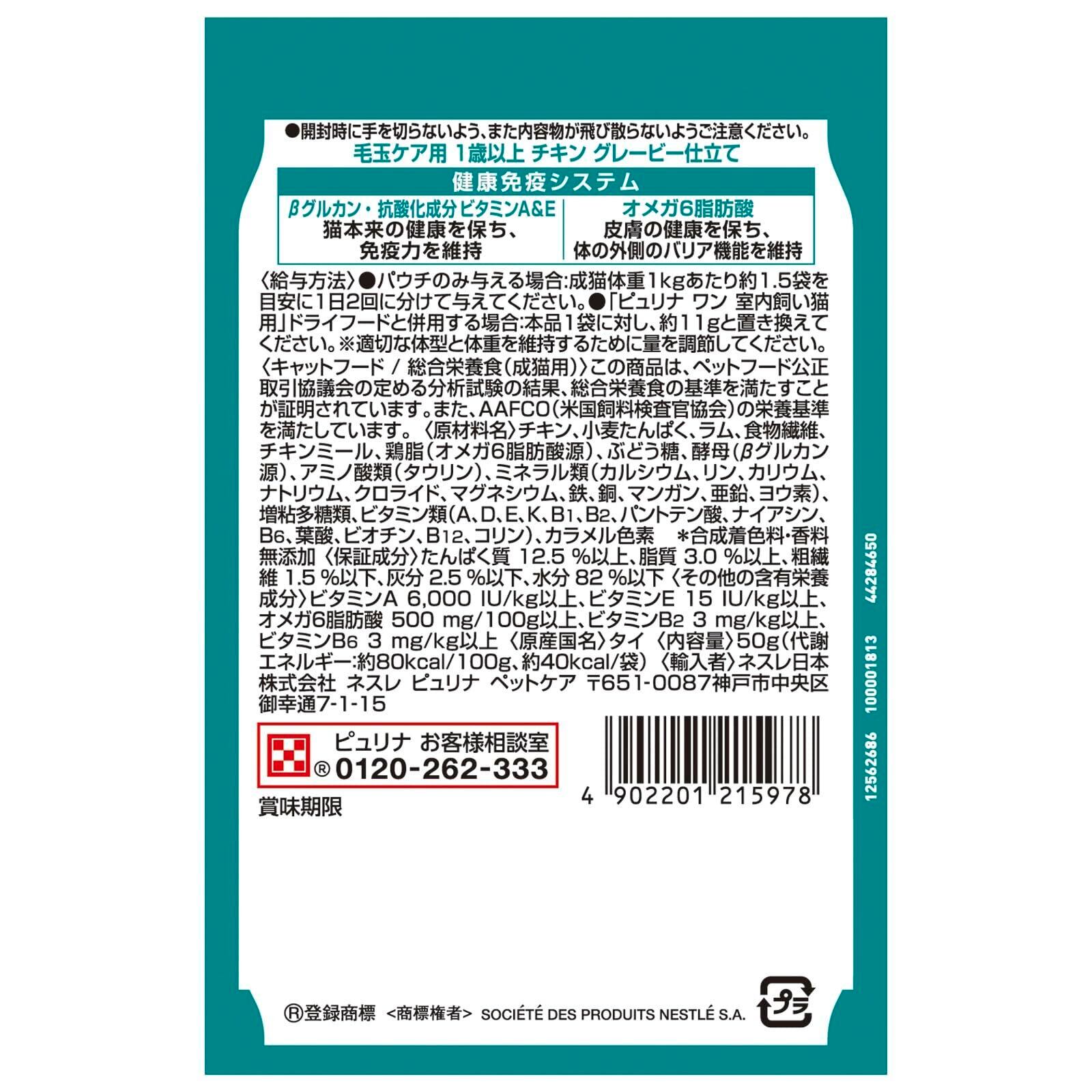ピュリナワンキャット パウチ 毛玉ケア用 1歳以上 チキングレービー仕立て 50g x12袋