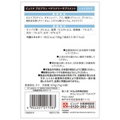 成分:たんぱく質:2%以上、脂質:0.22%以上、粗繊維:1%以下、灰分1%以下、水分97%以下、代謝エネルギー22kcal/100g(1袋当たり 約17kcal/100g)